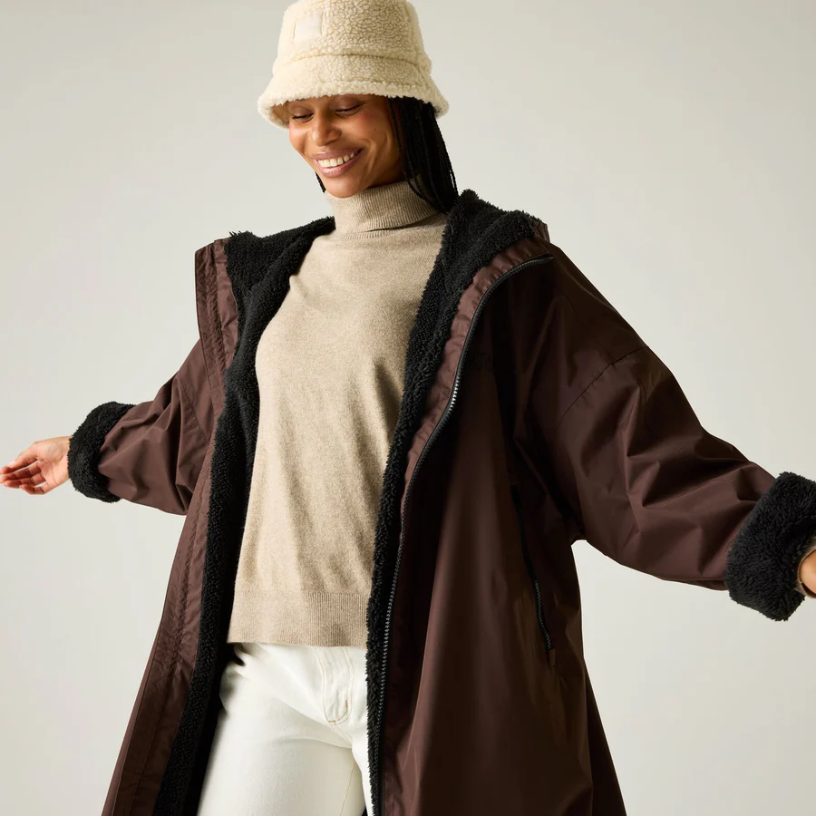 The Adults Waterproof Changing Robe from Regatta is just the thing you need for a summer of fun. Made from waterproof and windproof, quick-drying fabric, to keep you comfortable whatever the activity. With a warm fleece lining to help you dry off after swimming and a hood to protect you from the rain. Perfect for those long days at the beach, camping and festival fun.