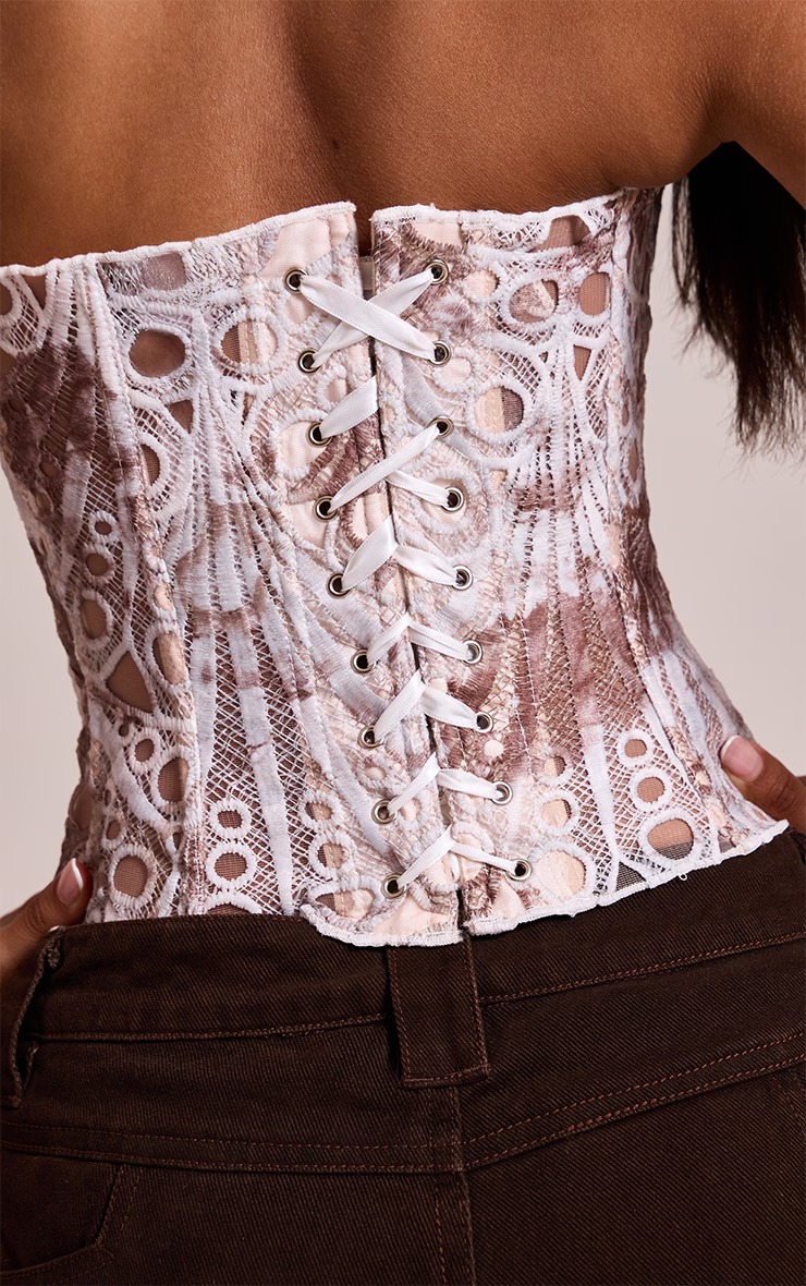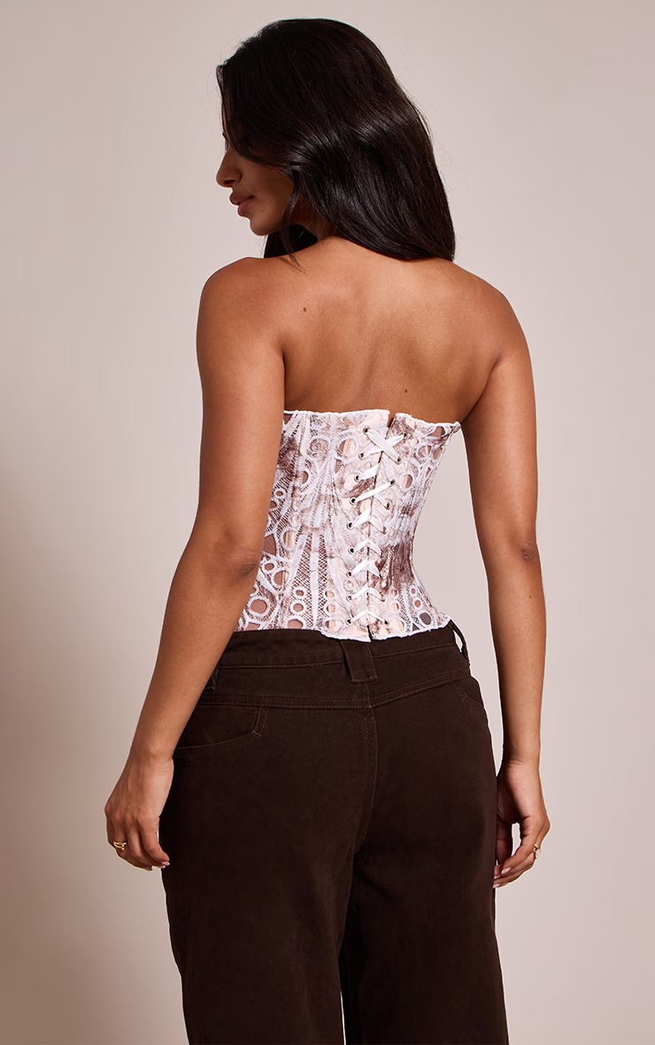 • Women's Random Pattern Lace Up Shapewear Tube Top, Elegant Contrast Lace Corset Top, Tummy Control Shapewear for Women