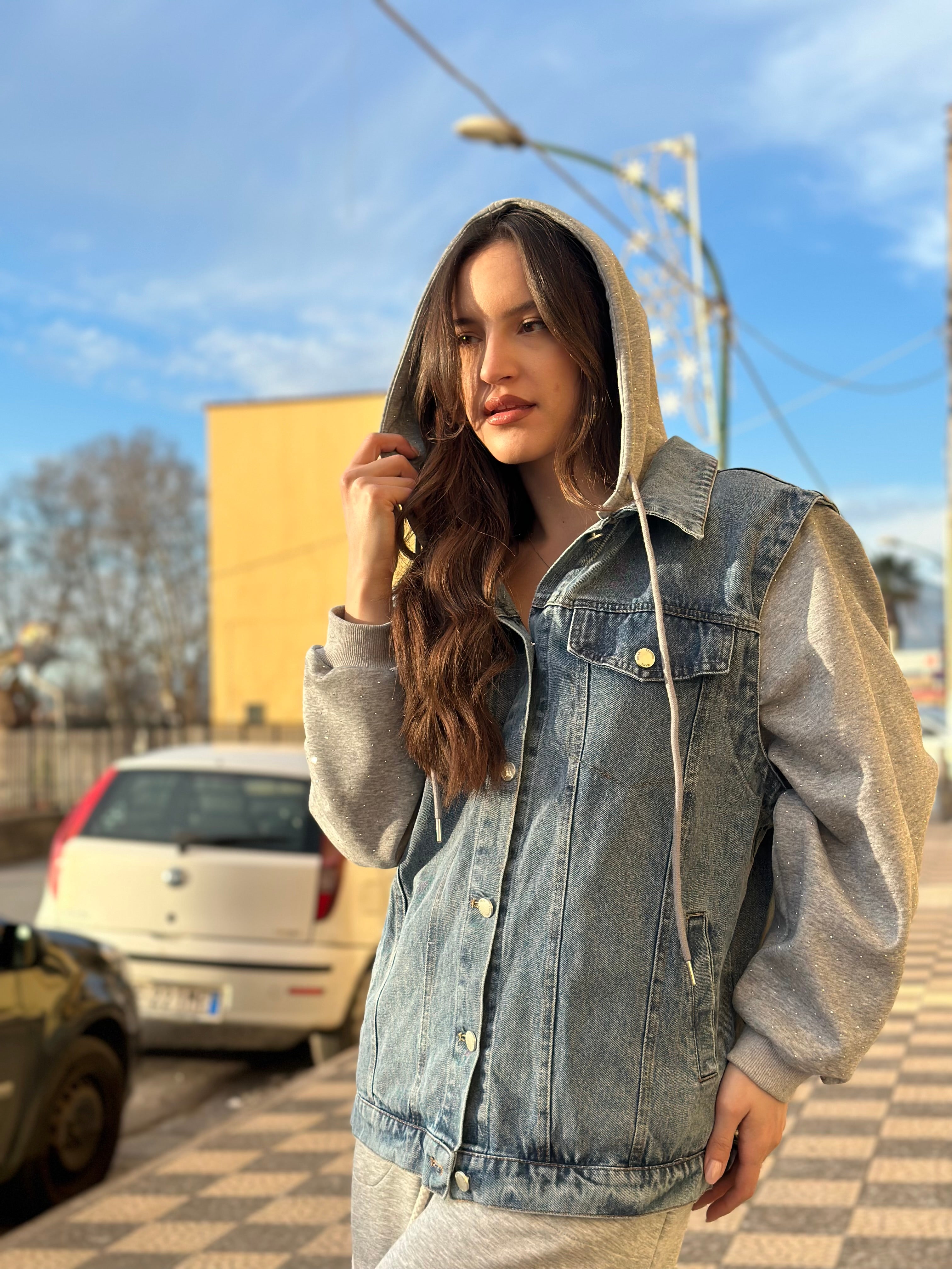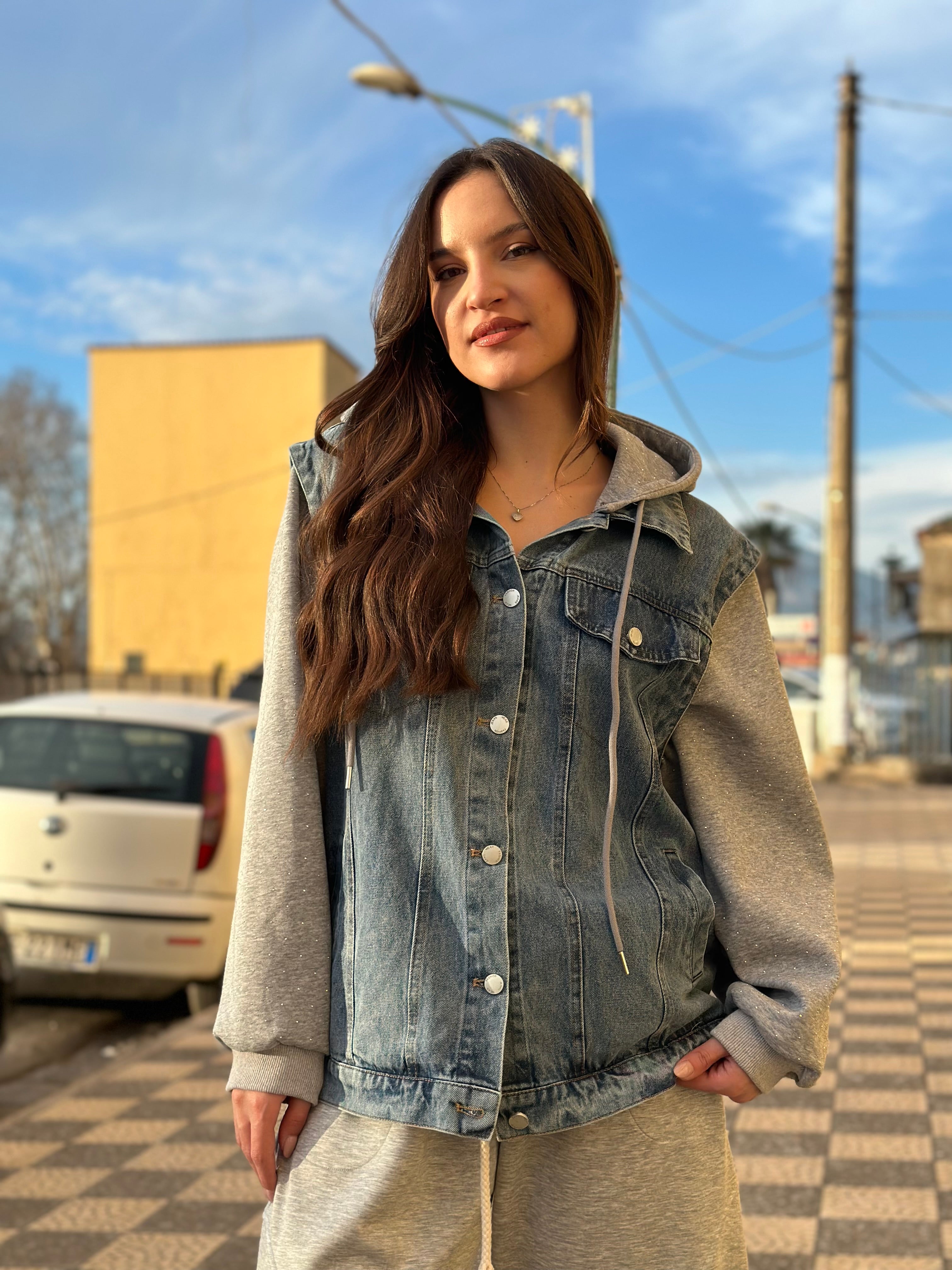 Esclusivo giubbotto in jeans felpato Erika con dettagli in denim per uno stile unico e alla moda. Realizzato con materiali di alta qualità, è estremamente confortevole e resistente. Perfetto per completare il tuo look invernale con un tocco di personalità e stile.