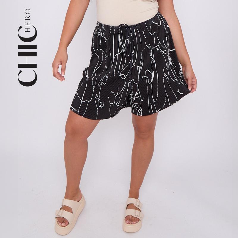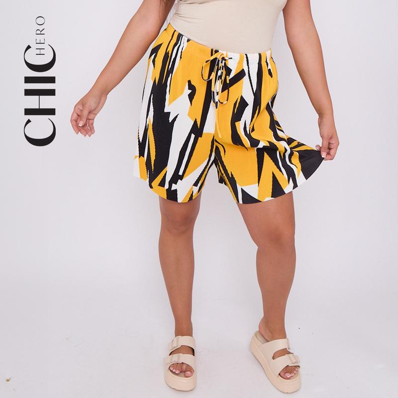 ChicHero Spring Summer Printed Elasticated Adjustable Waist Pleated Casual Shorts
