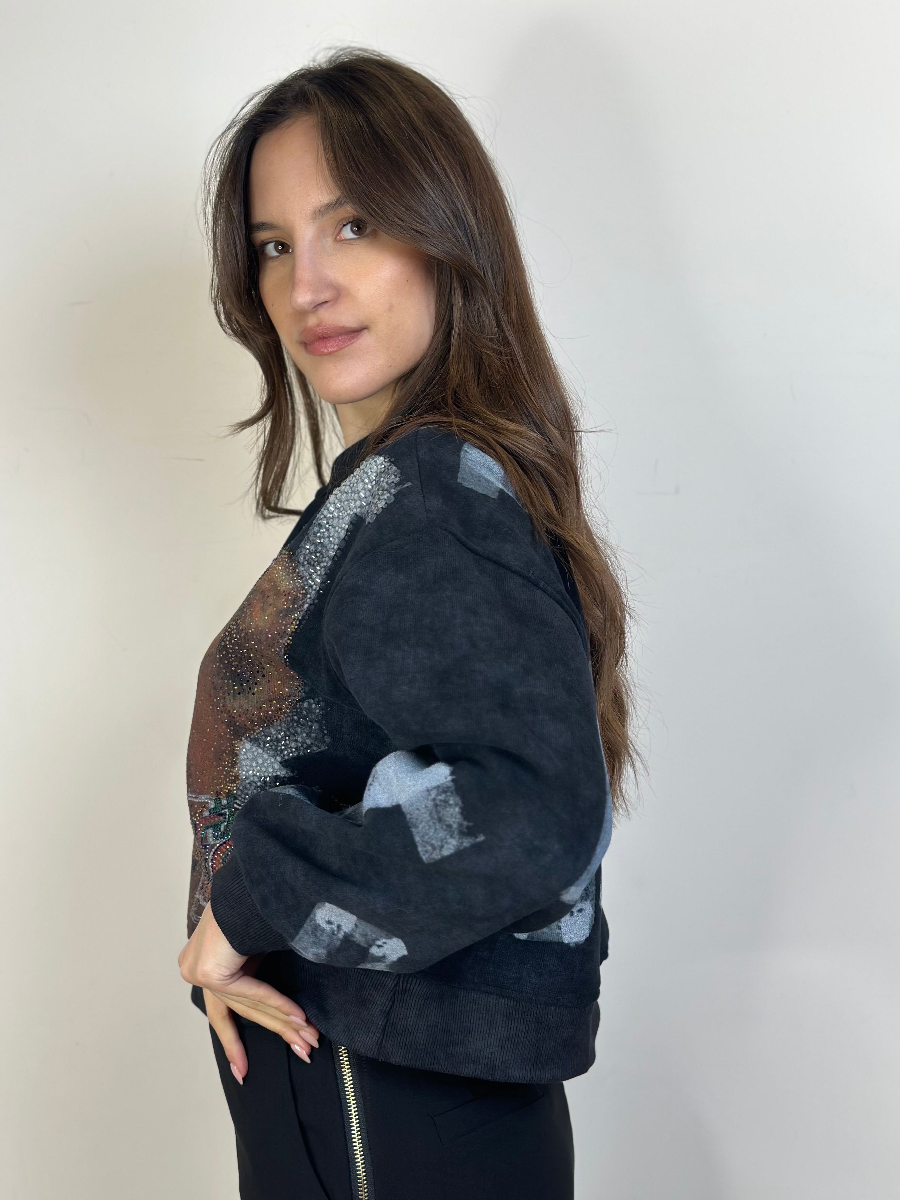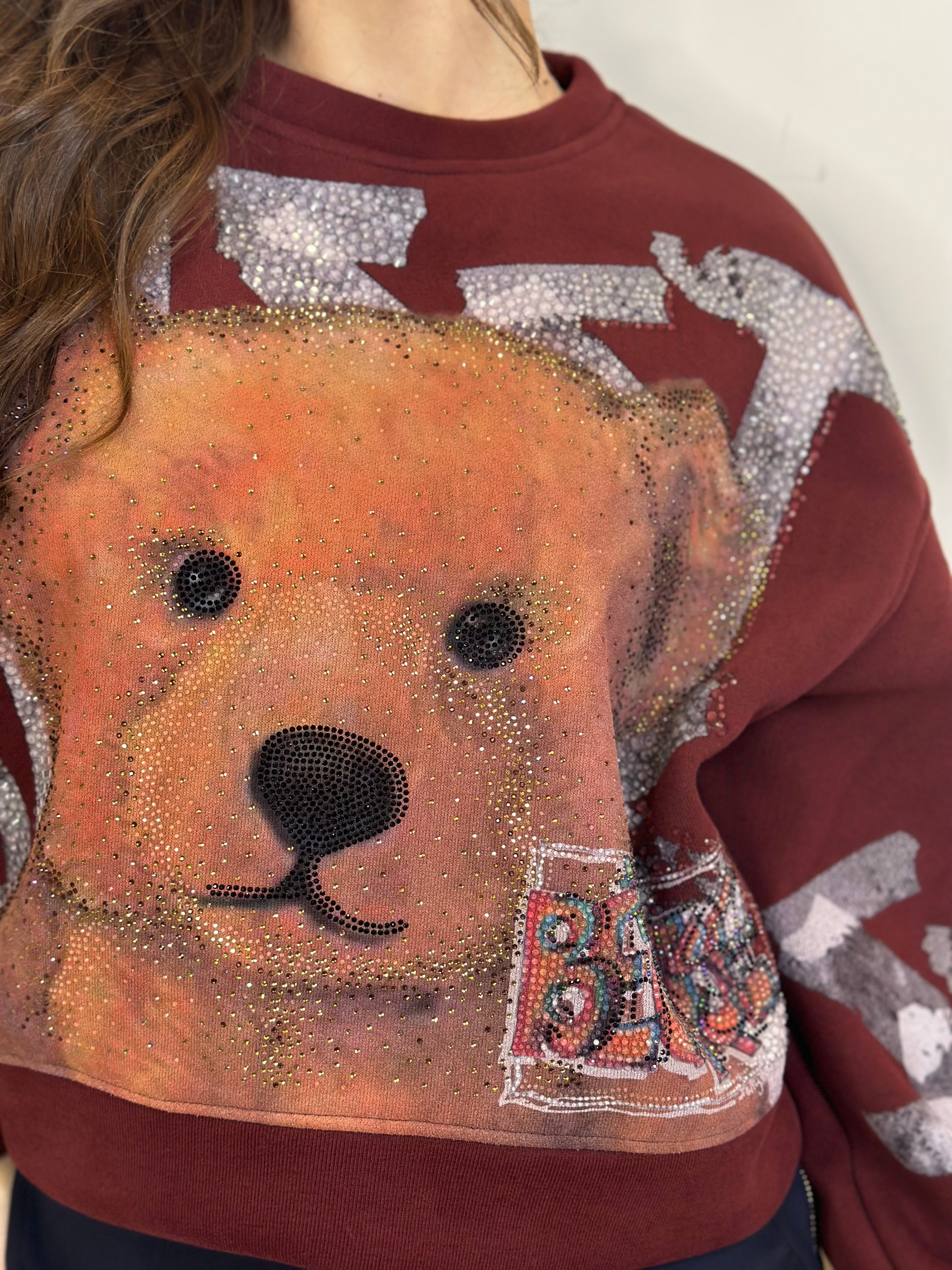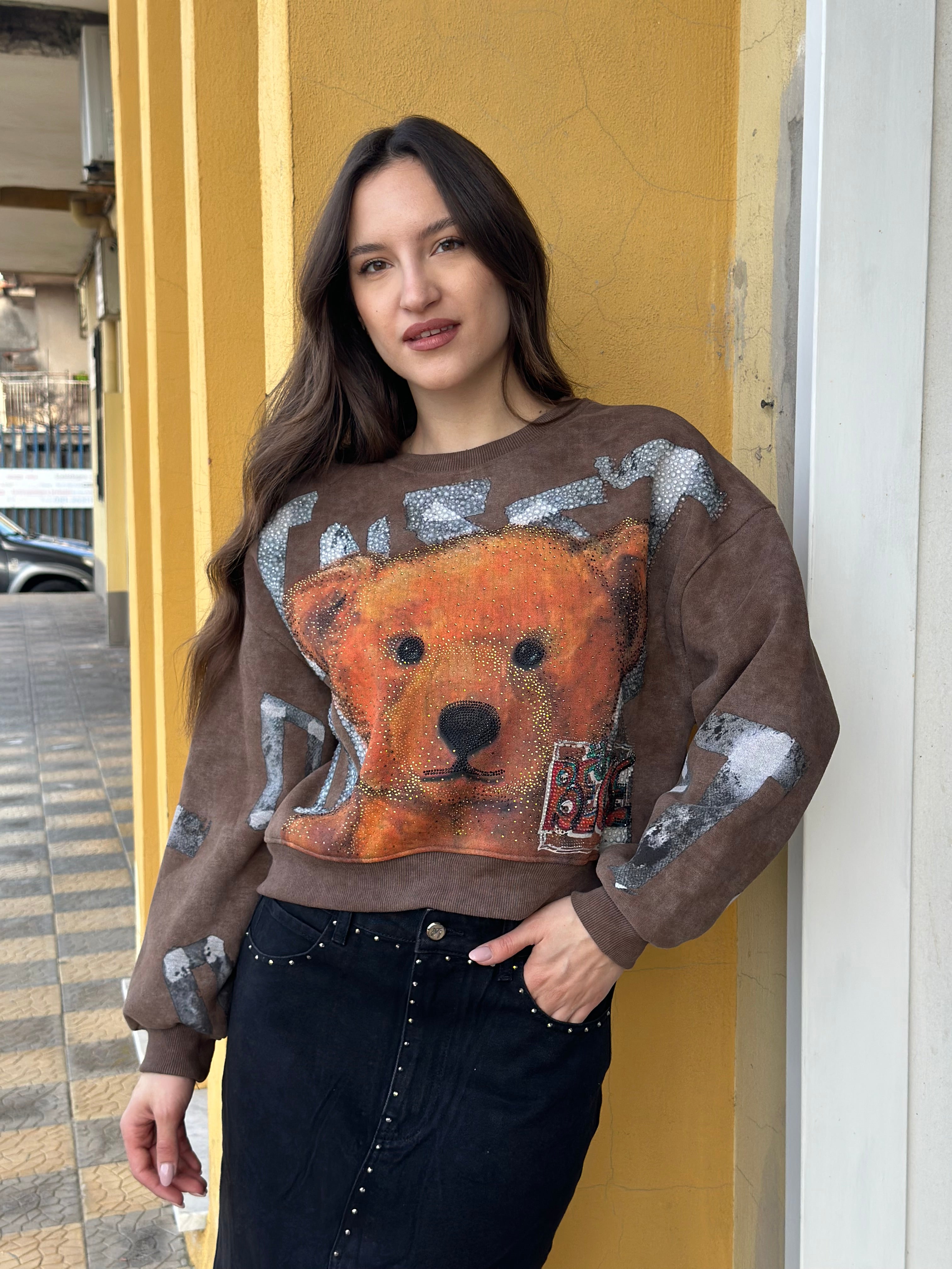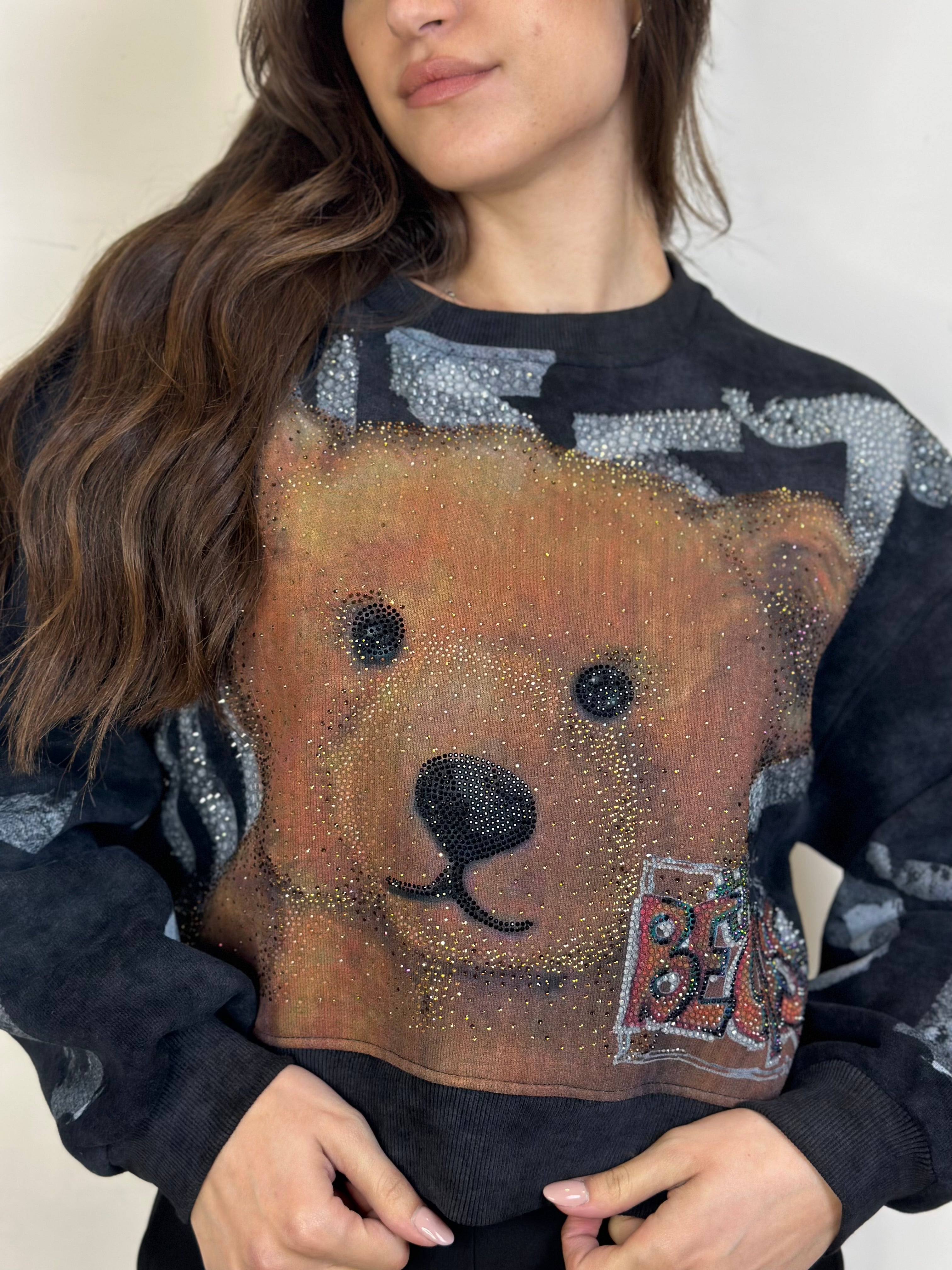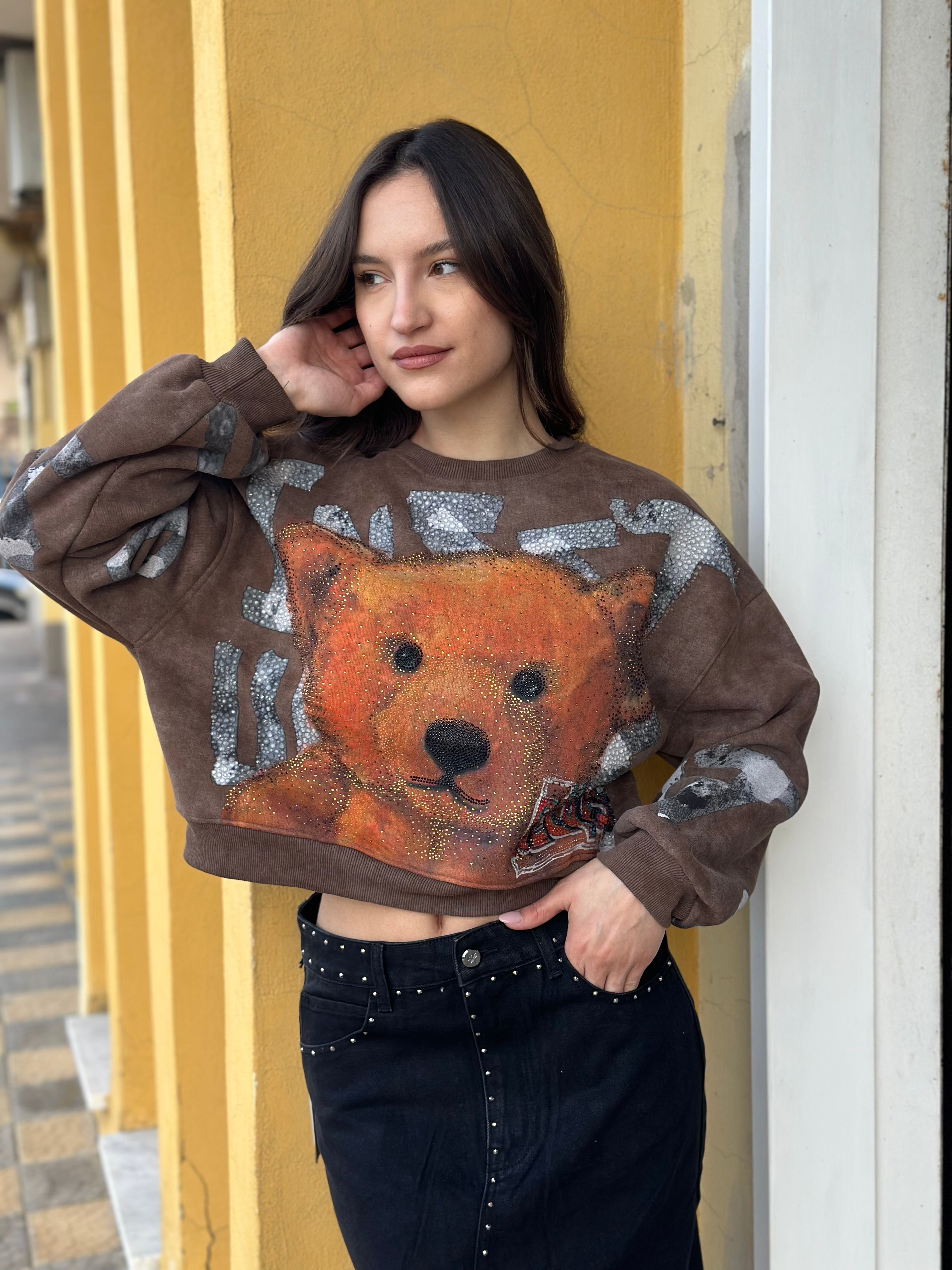 Questa calda felpa di alta qualità presenta un divertente disegno di orso e una patch di brillanti per un tocco di eleganza. Realizzata con materiali morbidi e resistenti, ti terrà al caldo e al riparo dal vento mentre esprimi il tuo stile unico. Perfetta per un look casual e di tendenza.