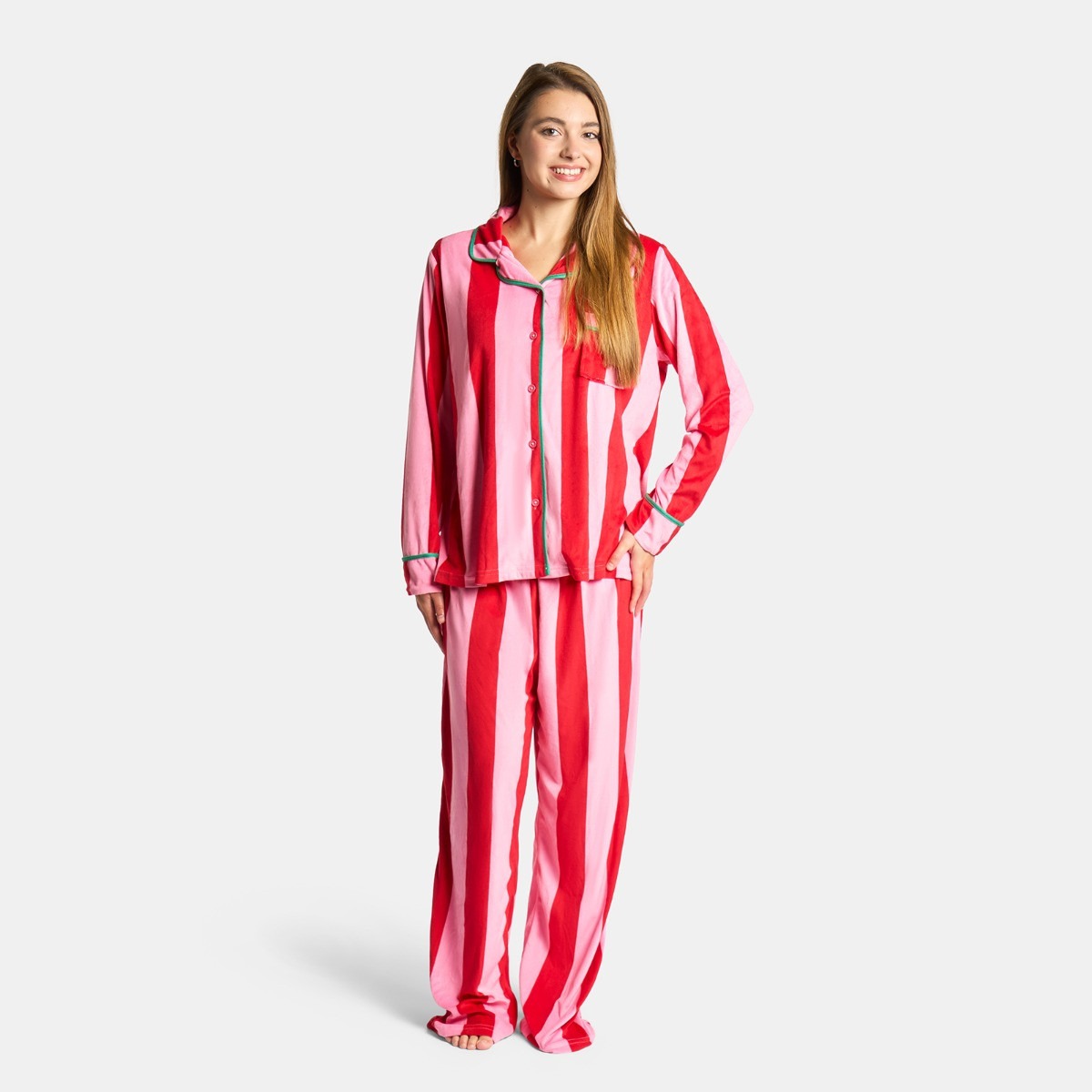OHS Pyjama Set Soft Cosy Warm Button Through Zip Hooded Fleece Cable Knit Waffle Teddy Plush Gaming Leopard Stripe Bows Gingerbread Man Autumnal Fall Halloween Christmas Festive Gifting Costume Matching Sets for Adults Kids Men Women Girls Boys