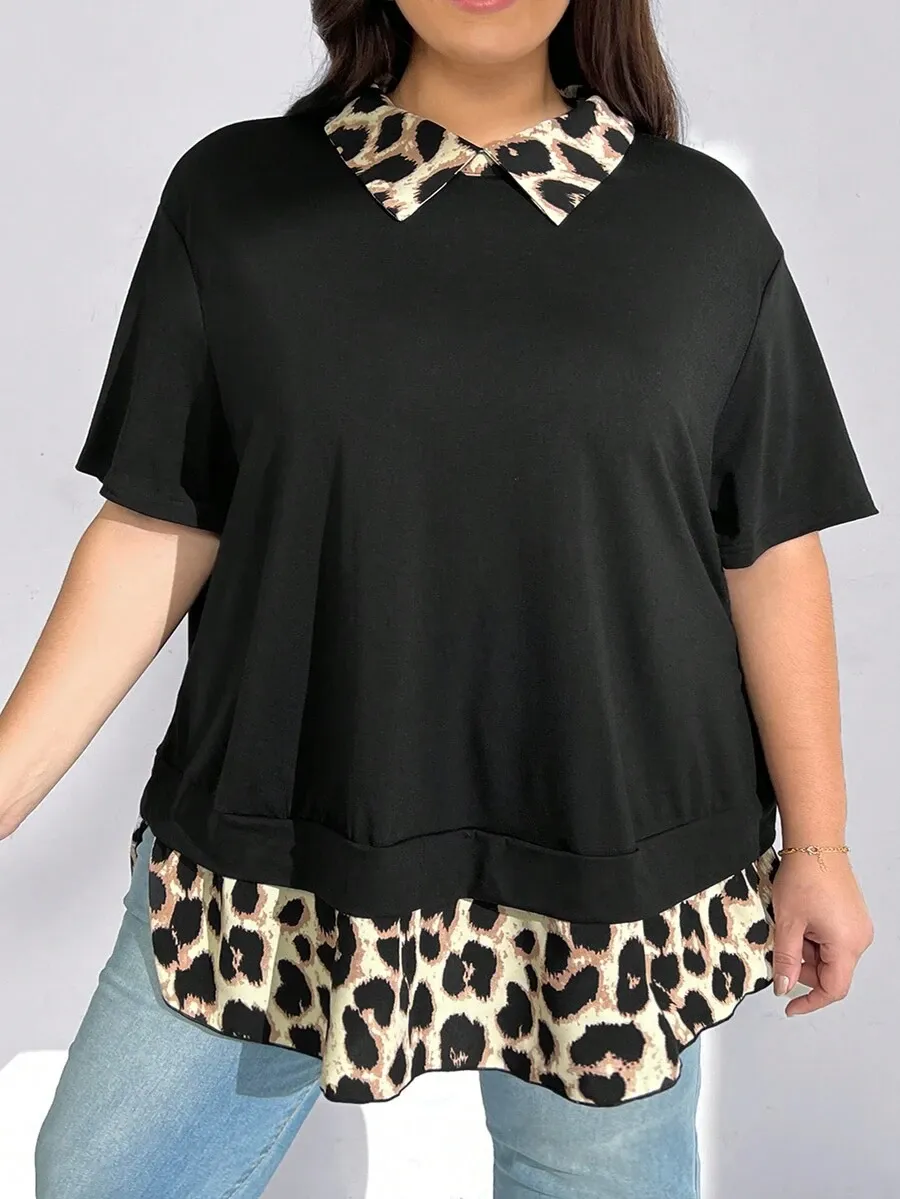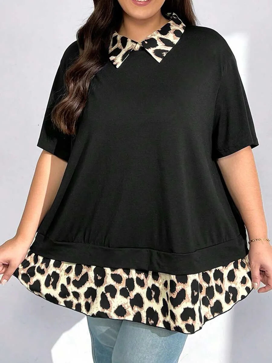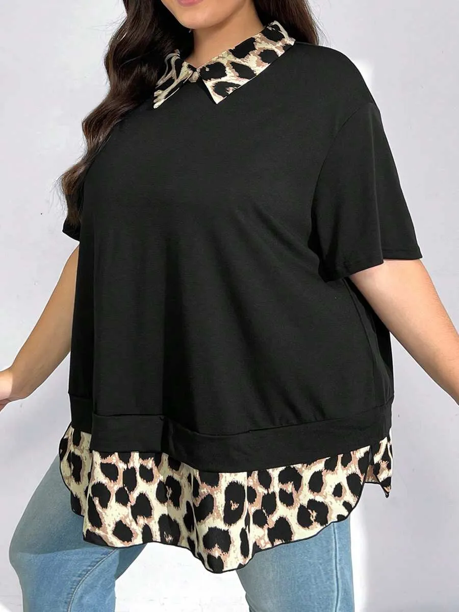 • Plus Size Women's Casual Printed Two-Piece Shirt Set, Summer Fashion Top, Comfortable and Stylish, Perfect for Daily Wear