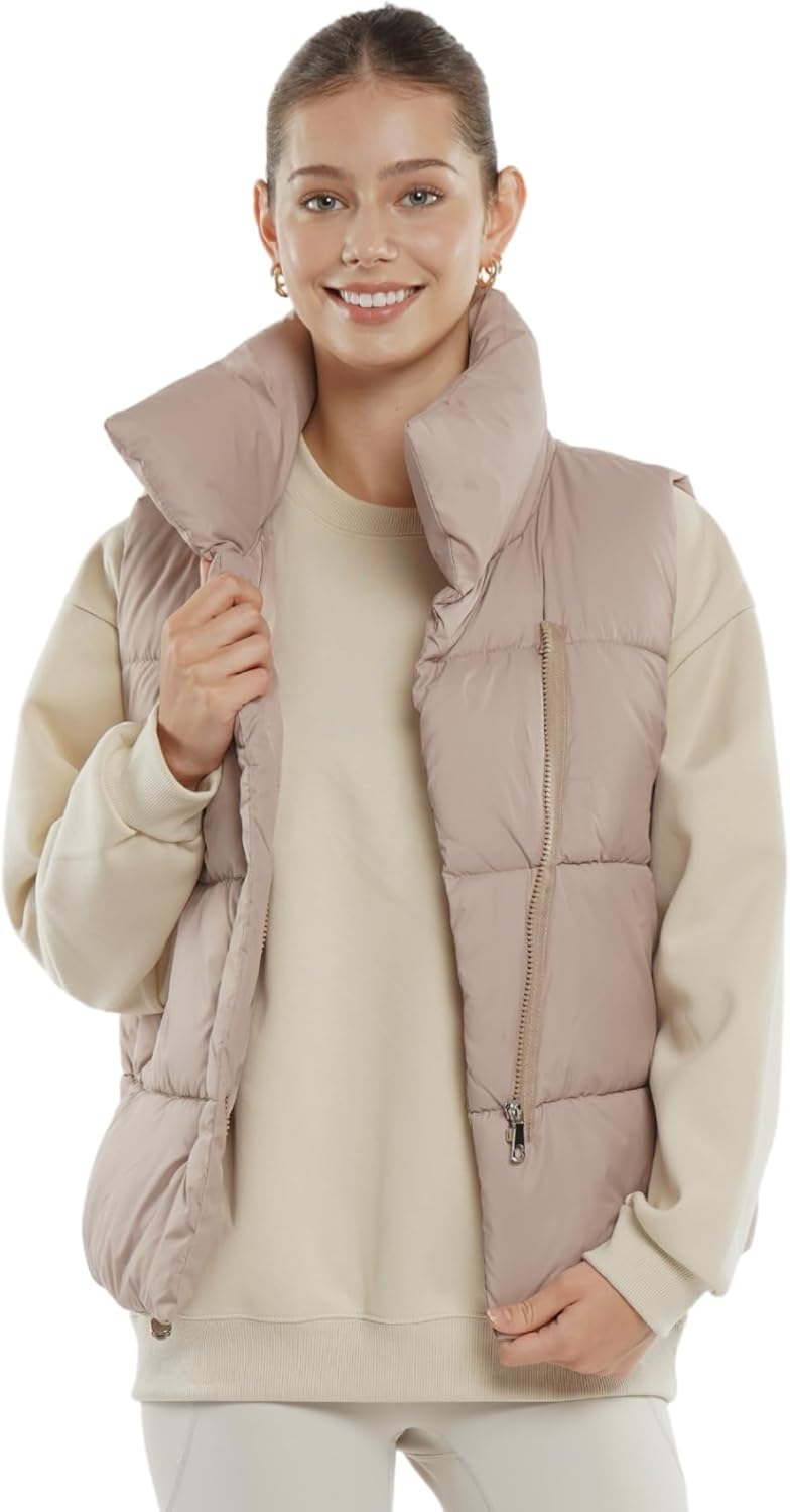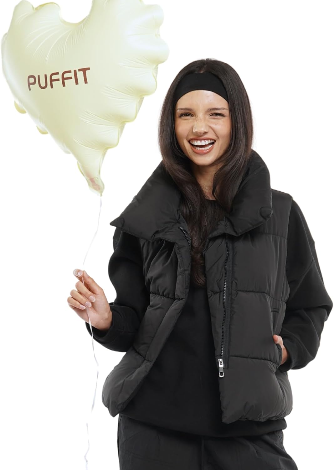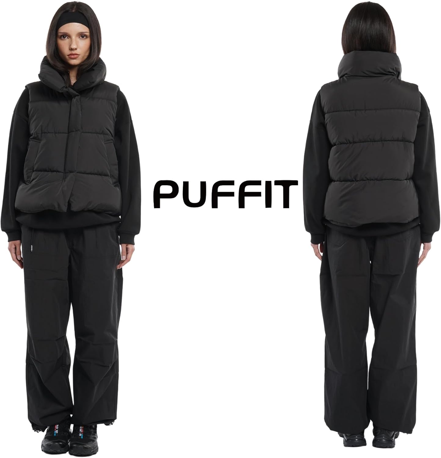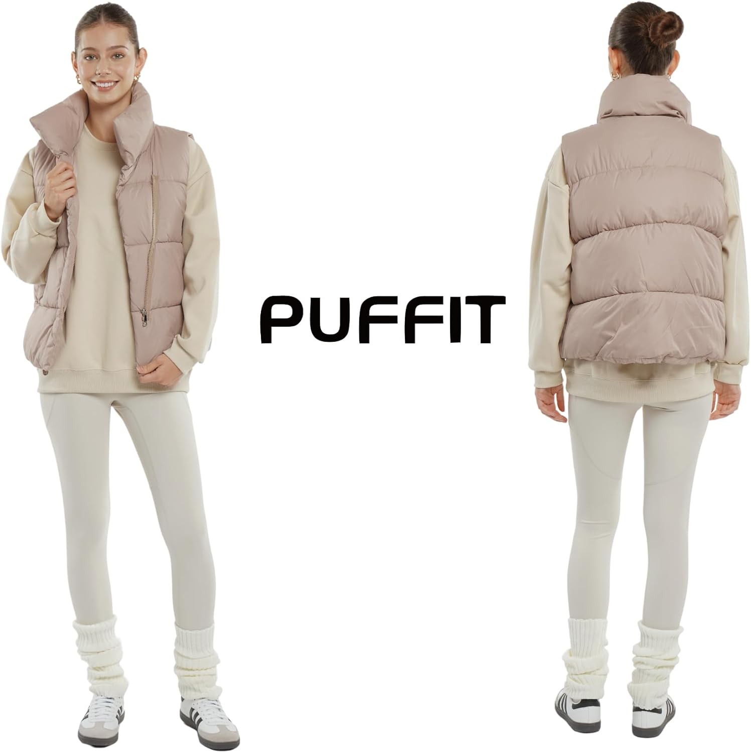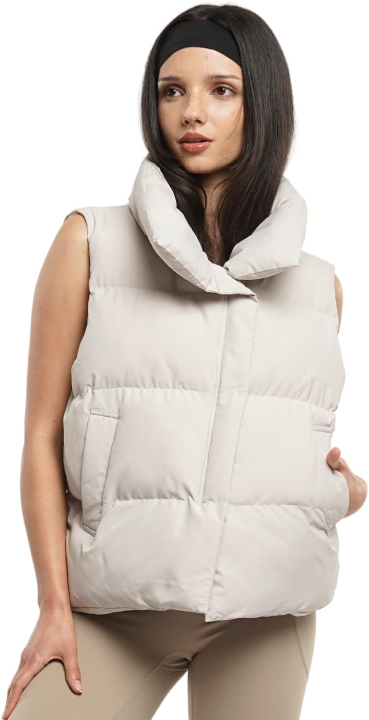 • Women Puffer Vest, Oversized Sleeveless Cropped Winter Vests Outerwear, Versatile Padded Warm Puffy Gilet Trendy