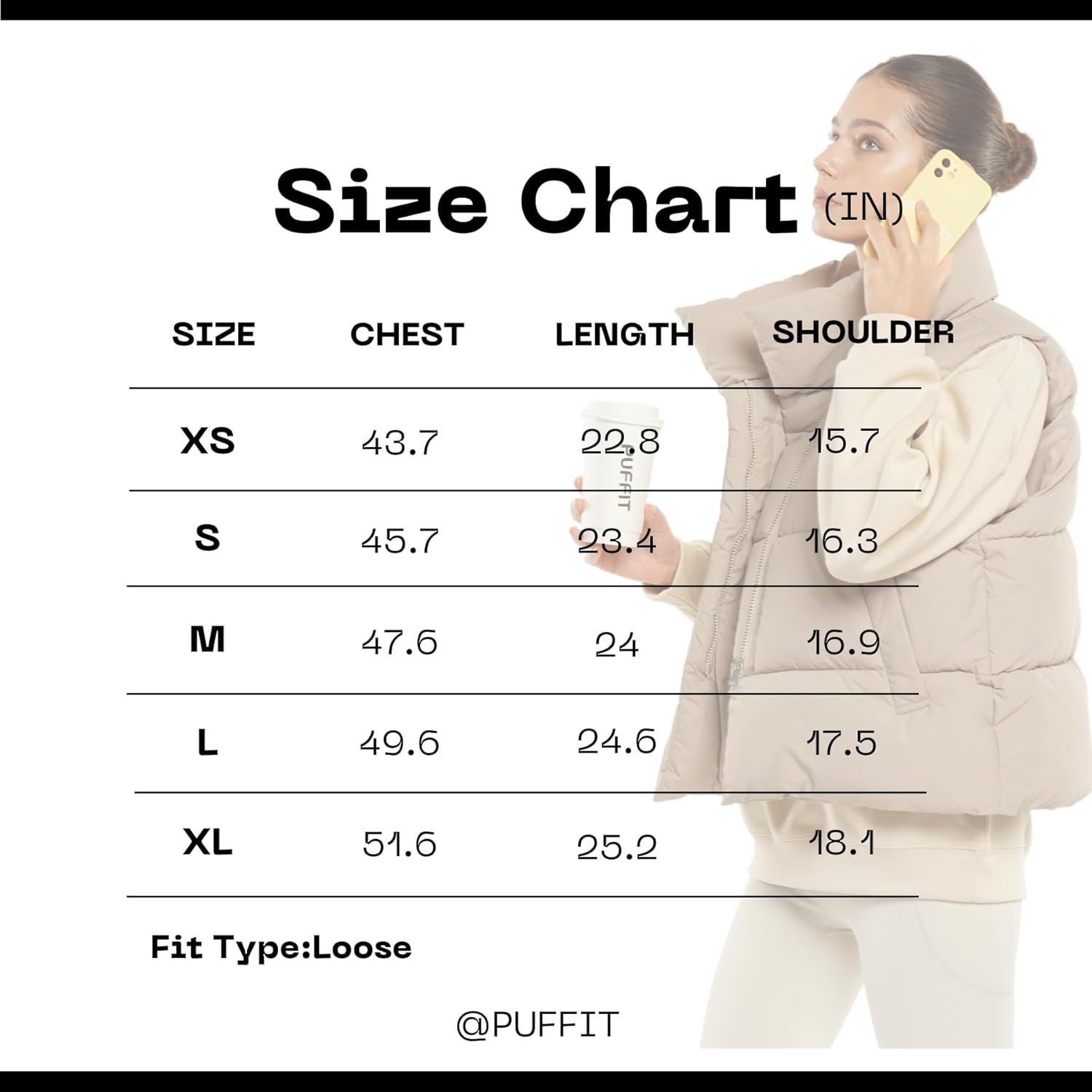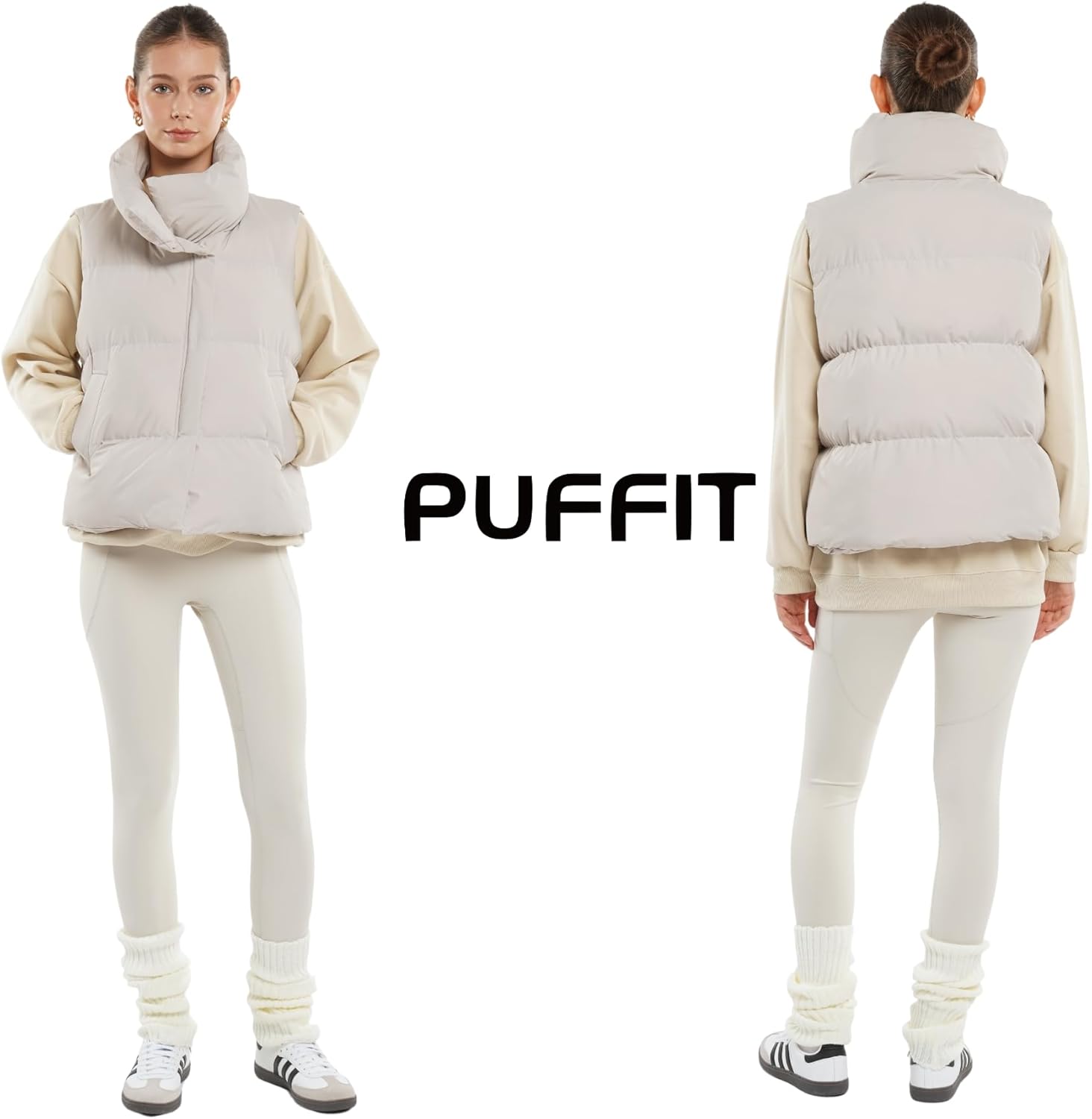• Women Puffer Vest, Oversized Sleeveless Cropped Winter Vests Outerwear, Versatile Padded Warm Puffy Gilet Trendy
