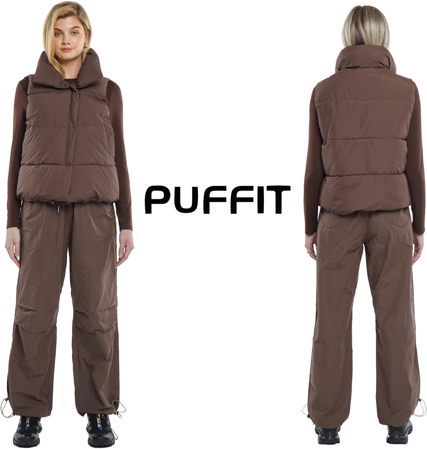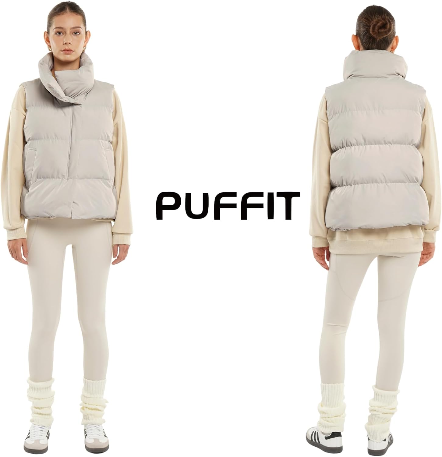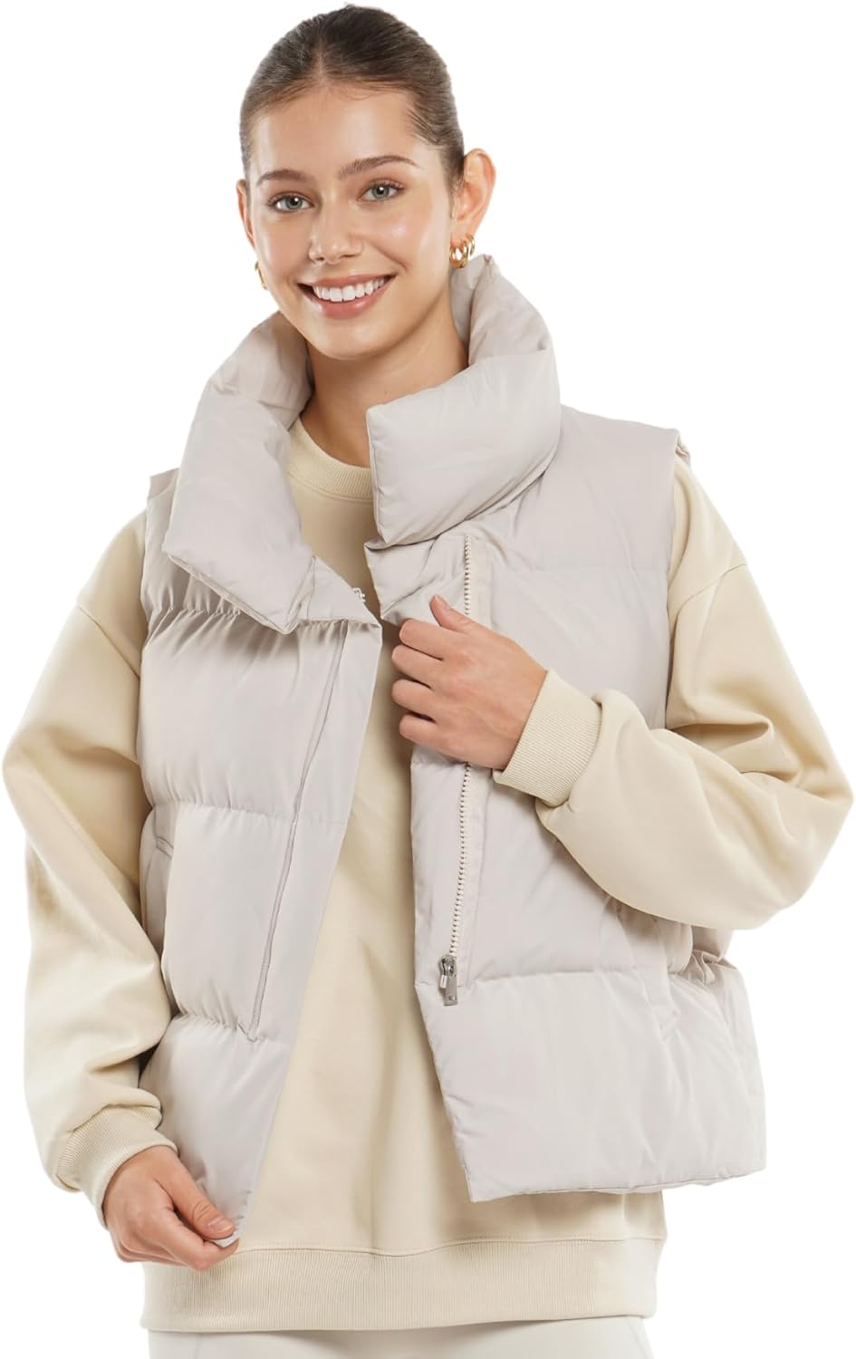 • Women Puffer Vest, Oversized Sleeveless Cropped Winter Vests Outerwear, Versatile Padded Warm Puffy Gilet Trendy