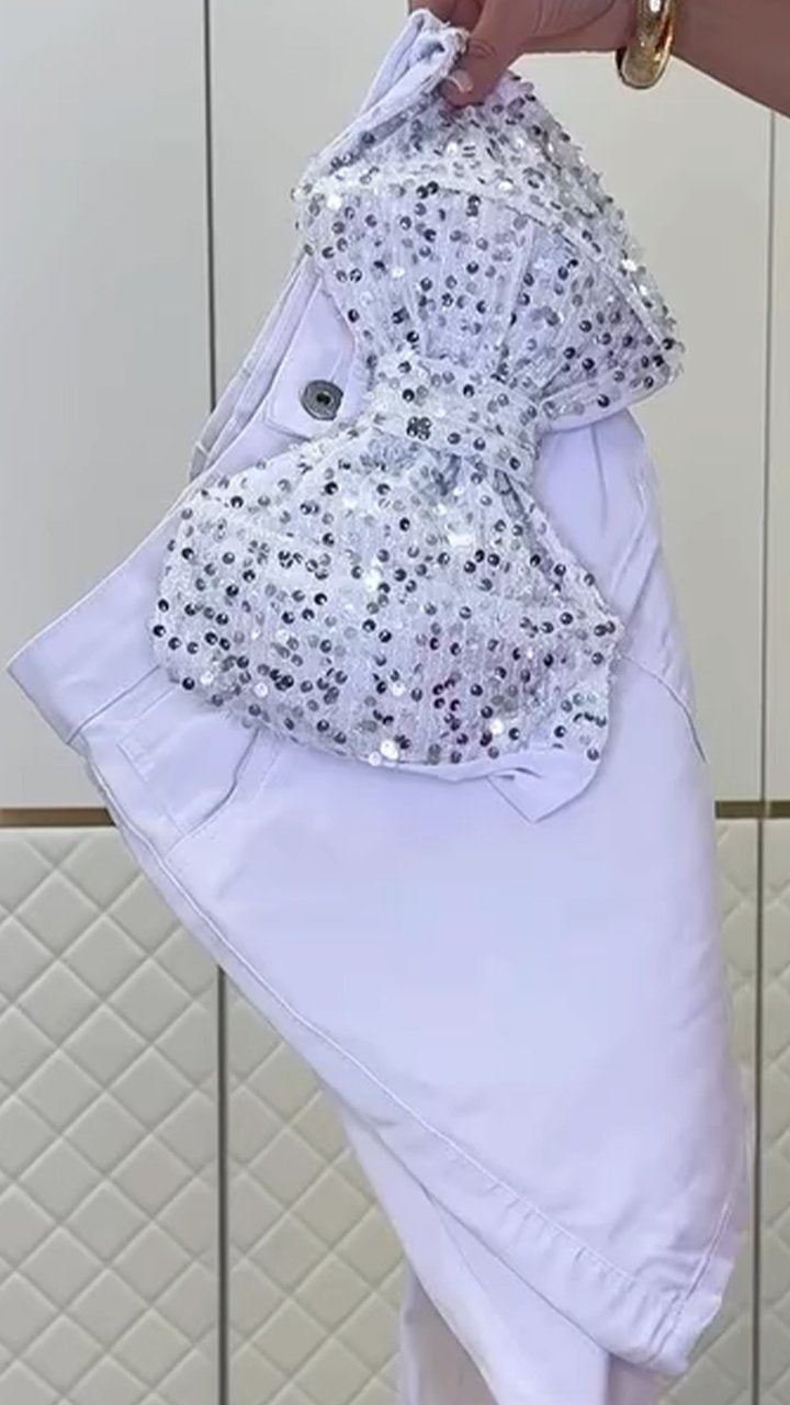 Women's Bow Tie Tube Top Sequined Suit