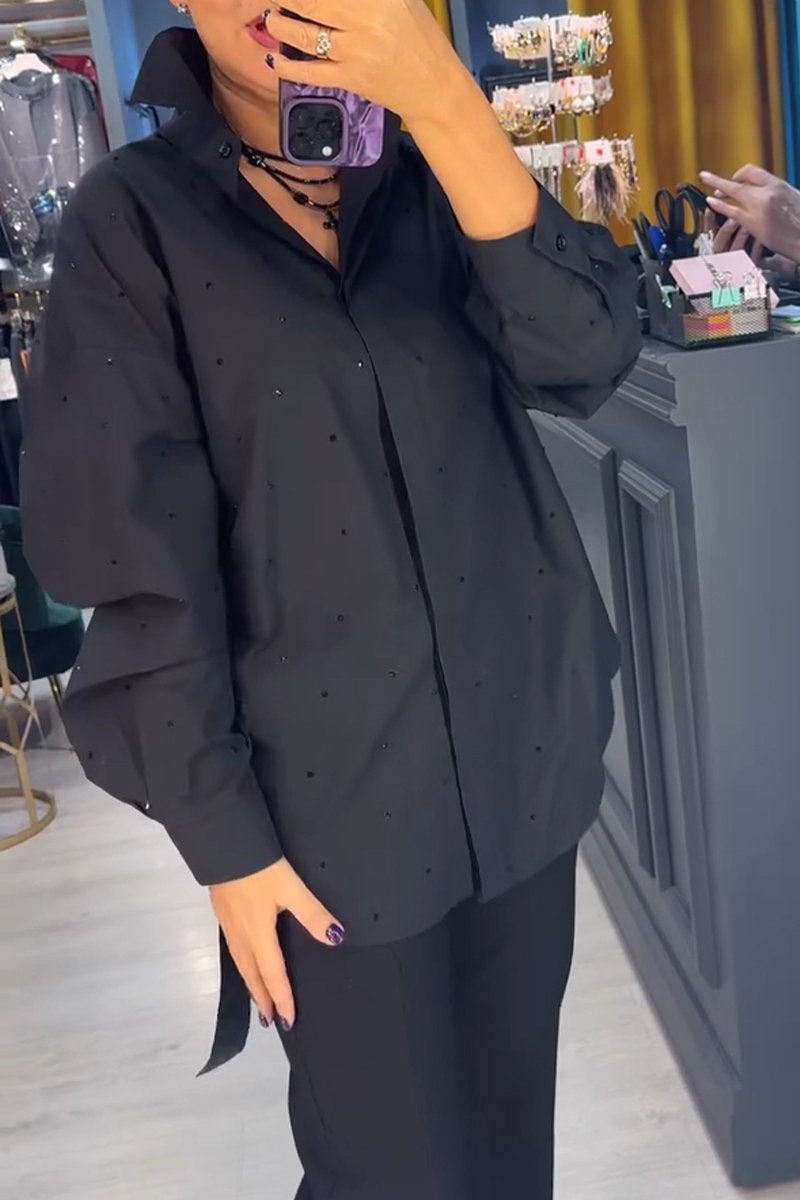 Women's Casual Lapel Single-breasted Shiny Shirt