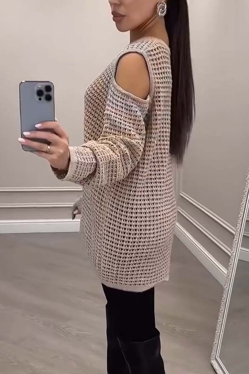 Women's Casual Off Shoulder Hollow Sweater