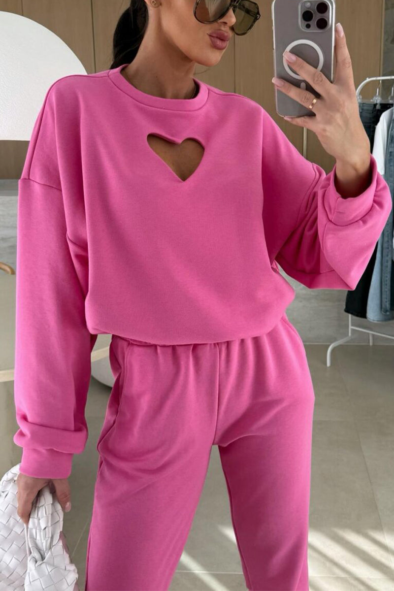 Women's Casual Round Neck Heart Hollow Sweatshirt Two-piece Suit