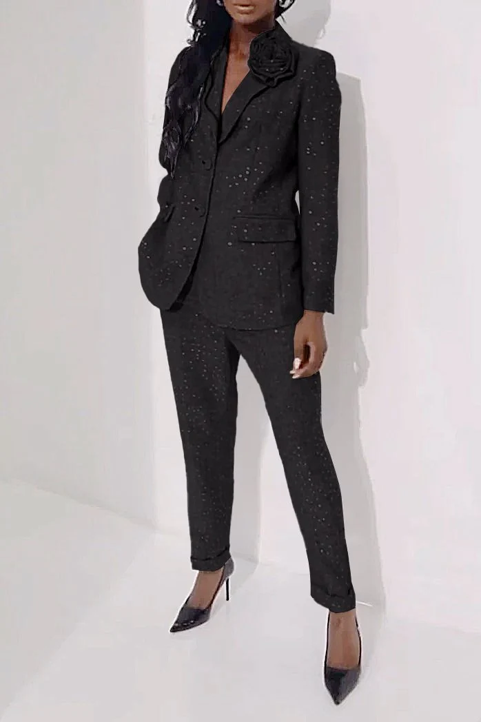 Women's Casual Sequined Shiny Slim Pants Two-piece Suit