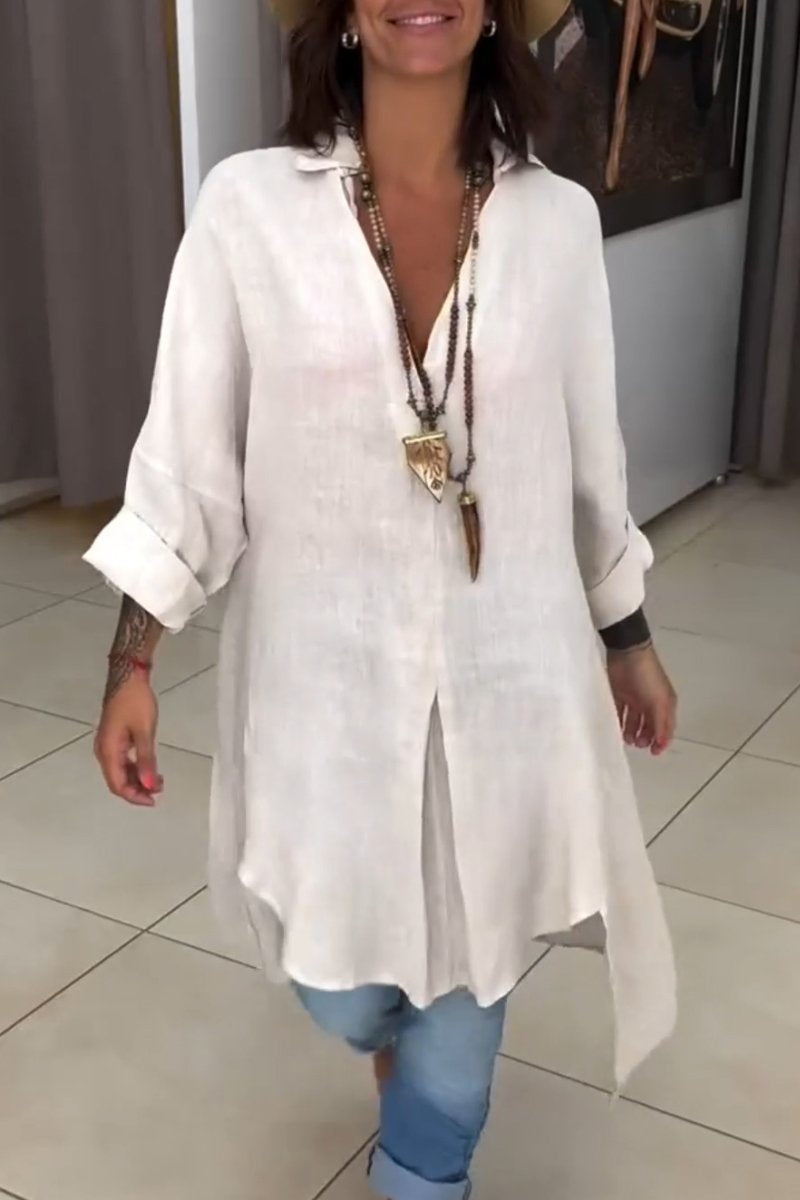 Women's Casual Solid Color Cotton Linen Long Sleeve Top