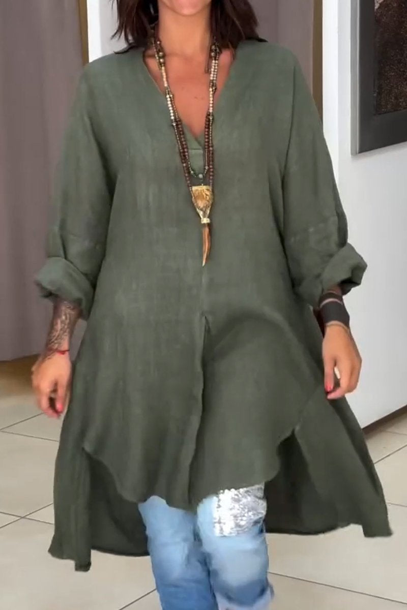 Women's Casual Solid Color Cotton Linen Long Sleeve Top