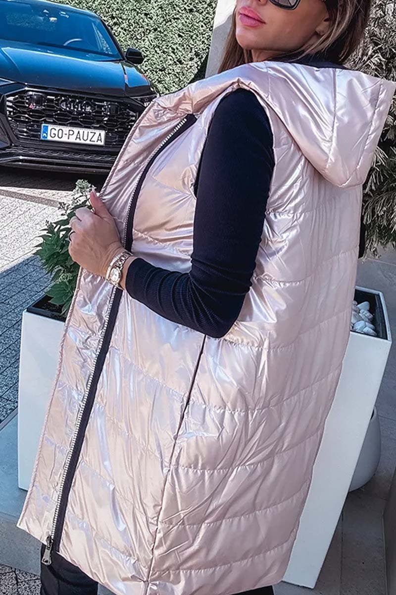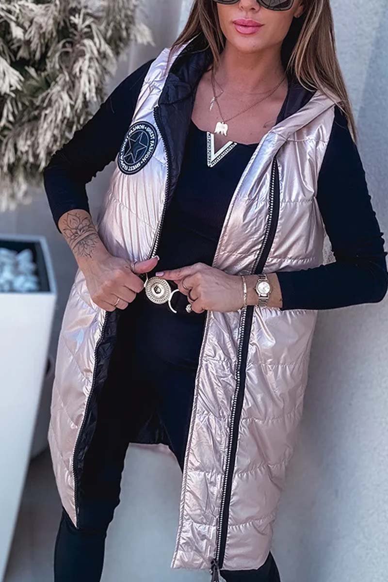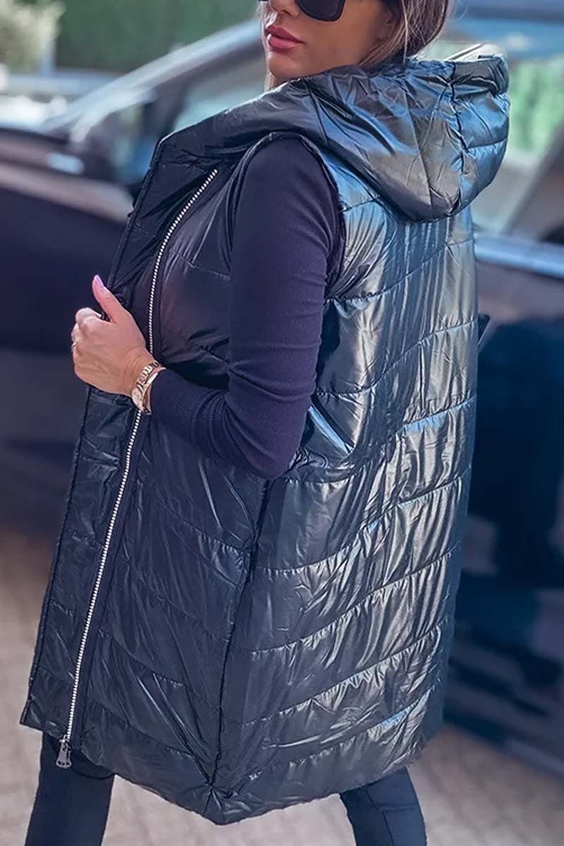 Women's casual solid color hooded sleeveless mid-length coat