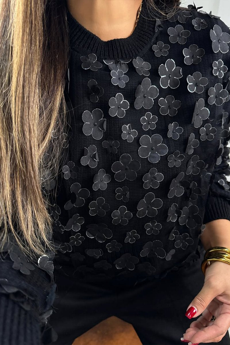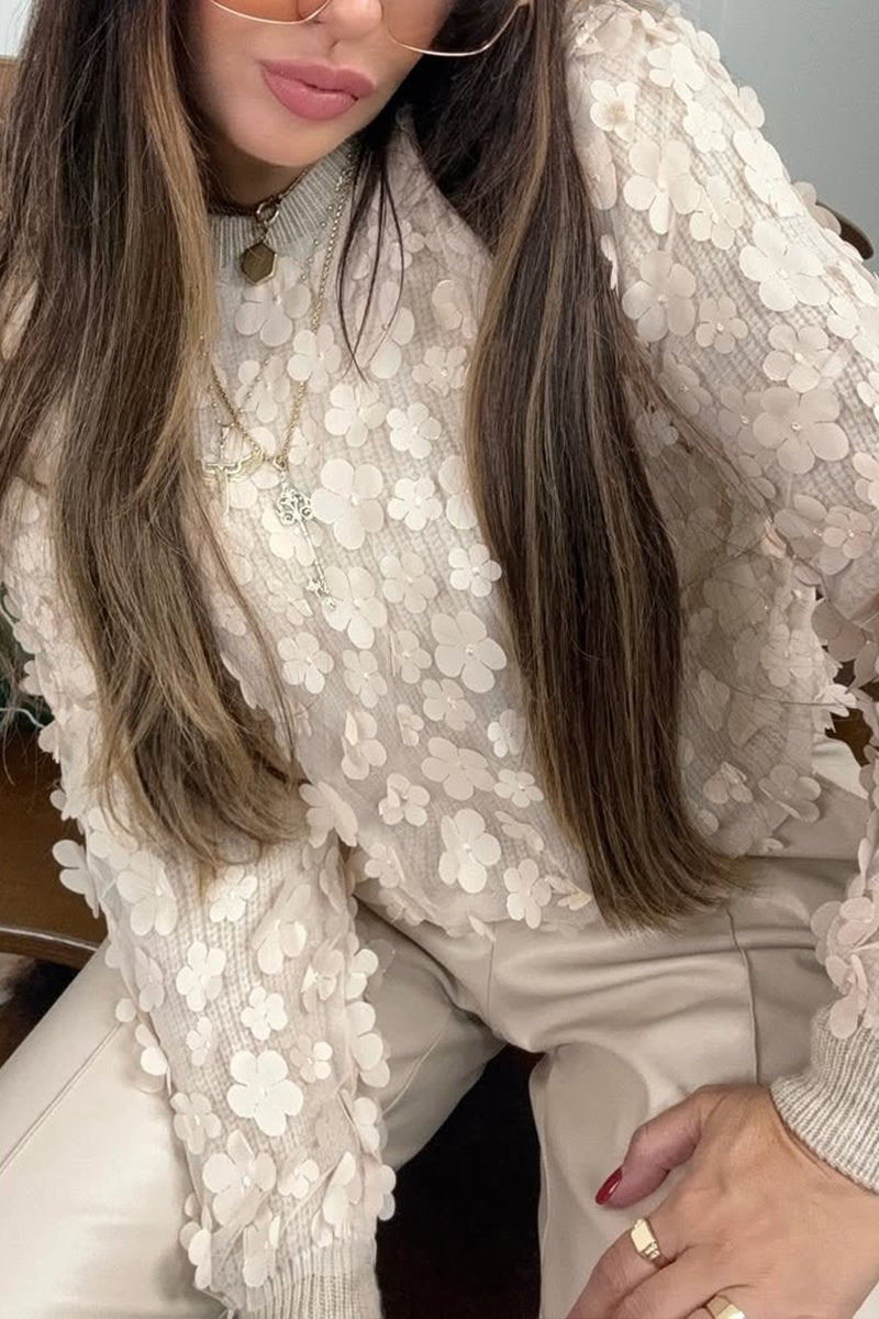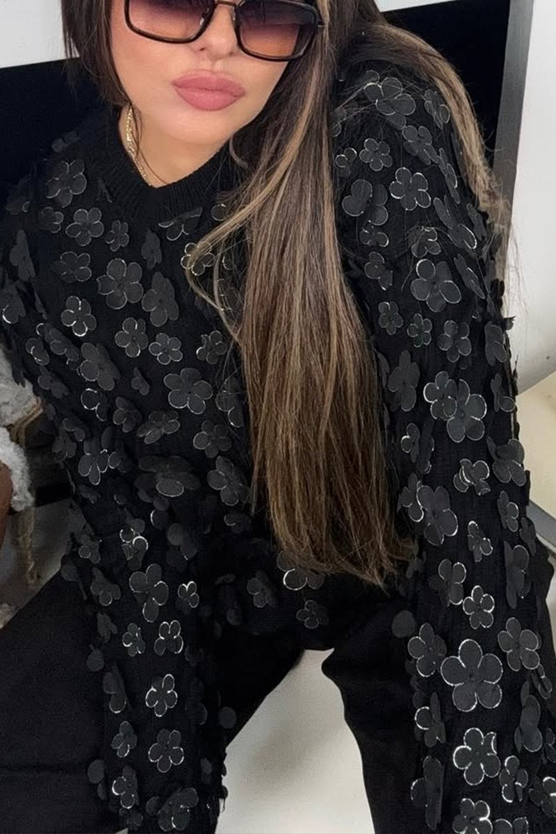 Women's Casual Solid Color Round Neck Floral Sweater