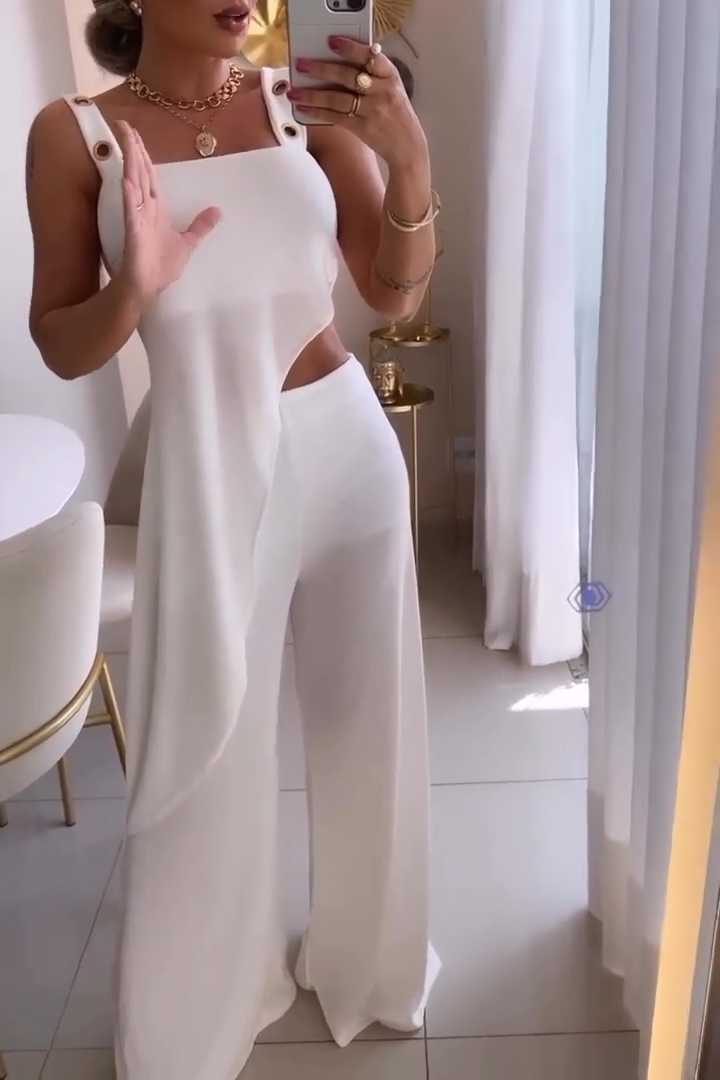 Women's Casual Solid Color Sleeveless Square Neck Irregular Hem Two-piece Suit