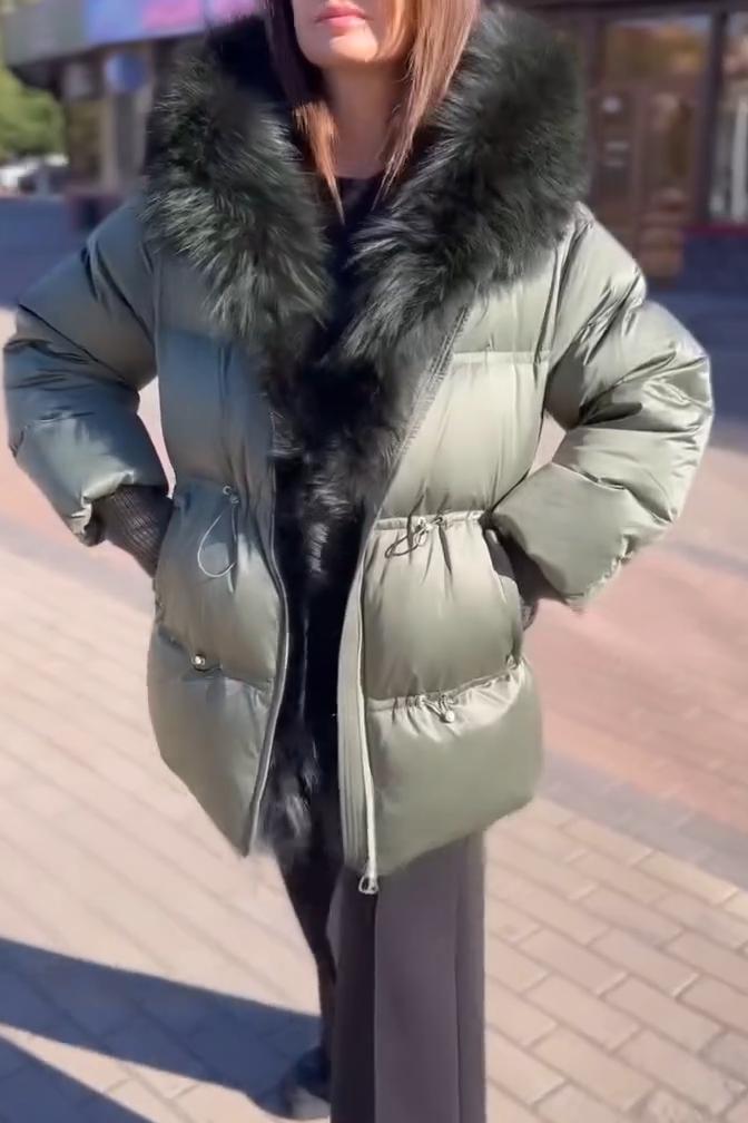Women's Casual Solid Color Warm Large Fur Collar Cotton Coat