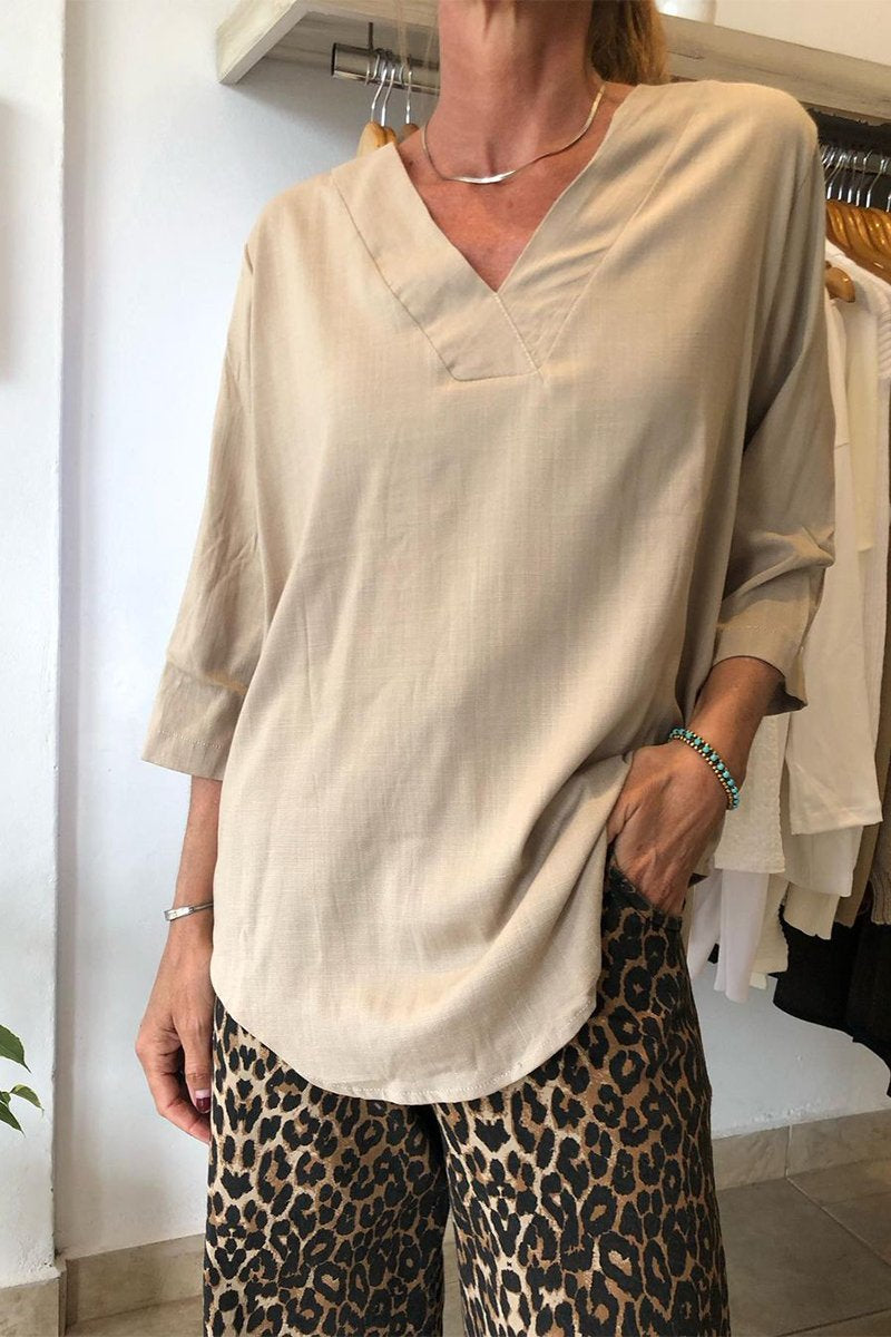 Women's Casual V-neck Solid Color T-shirt