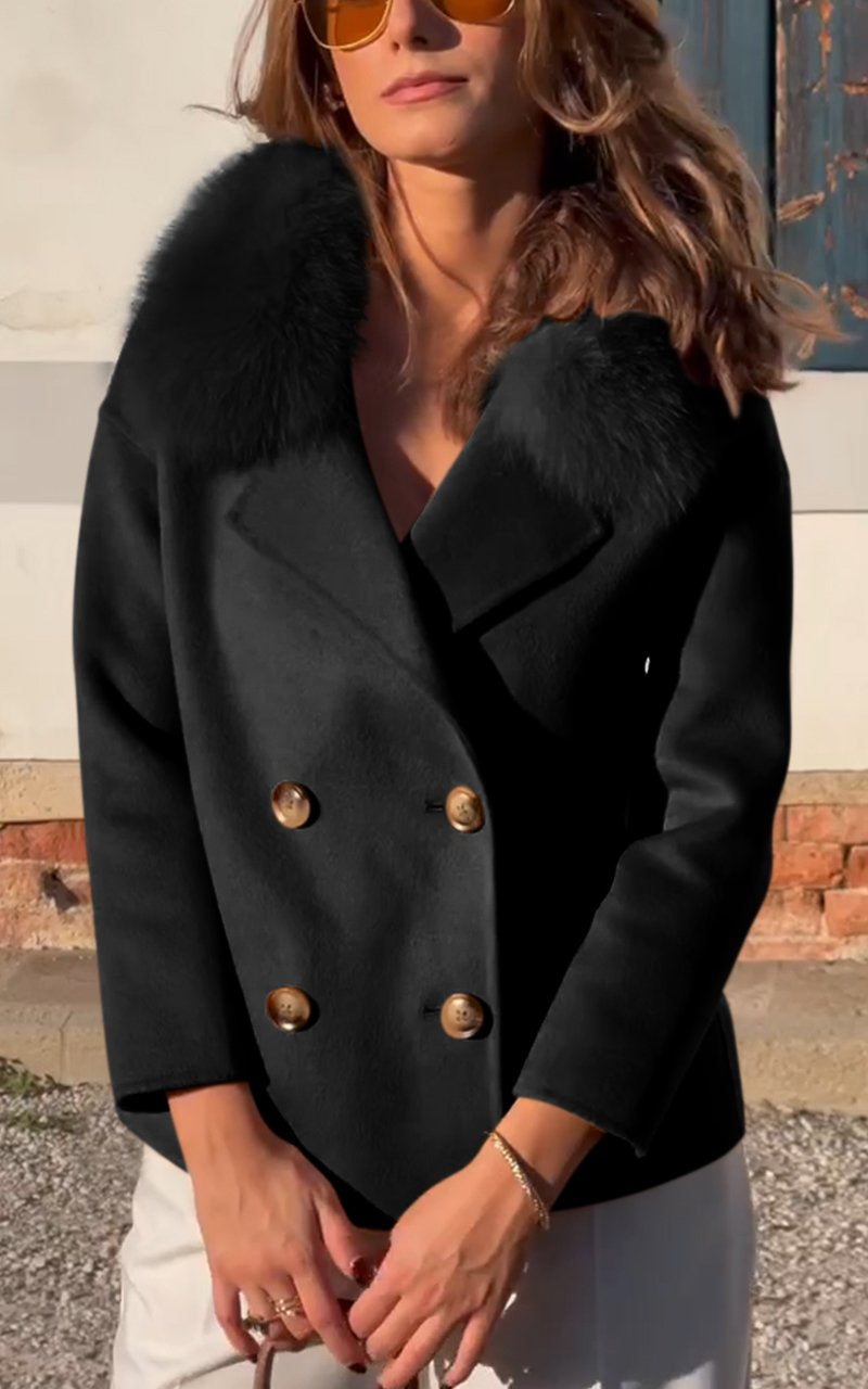 Women's Elegant Fur Collar Button Wool Coat