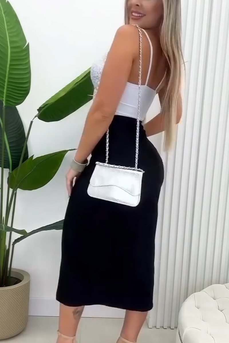 Women's elegant sequined hollow vest & elegant hip-covering slit skirt