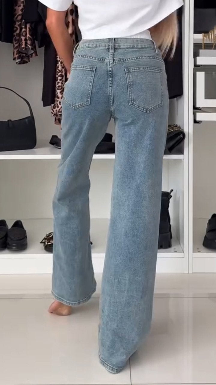 Women's Faux Two-piece Denim Straight-leg Wide-leg Trousers