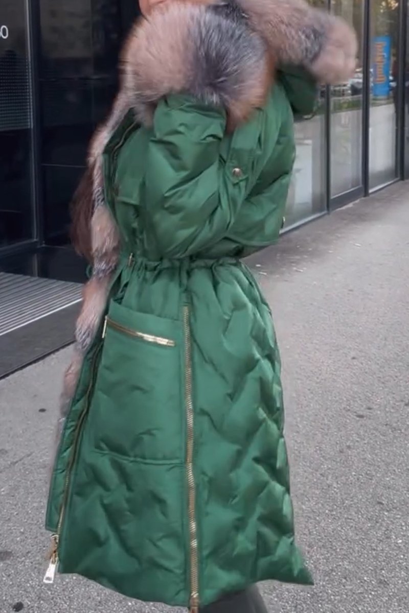 Women's fur collar and sleeves down overcoat