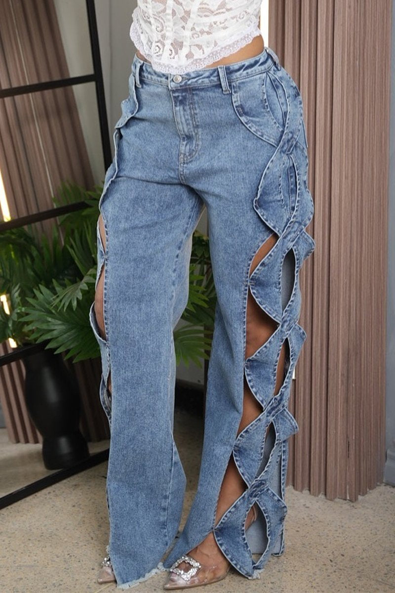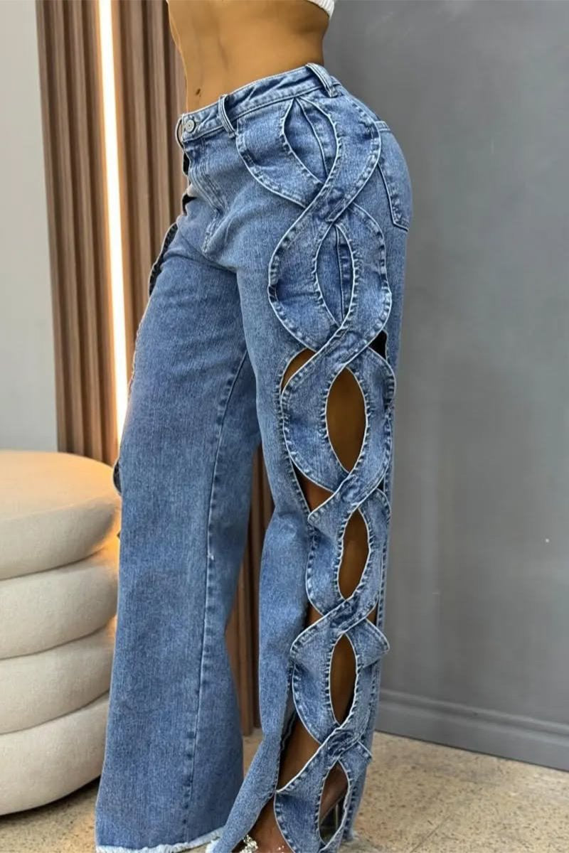 Women's Hollow Design Wide-leg Fashionable Jeans