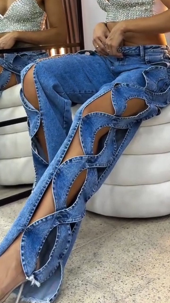 Women's Hollow Design Wide-leg Fashionable Jeans