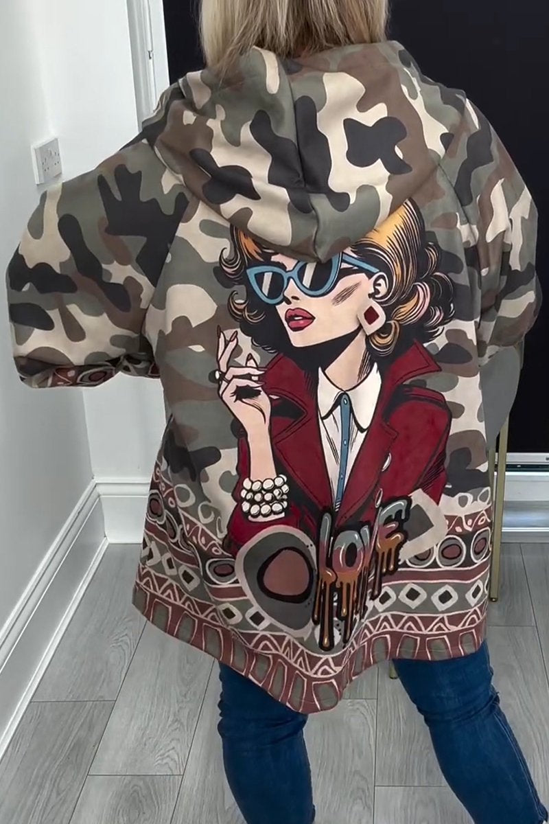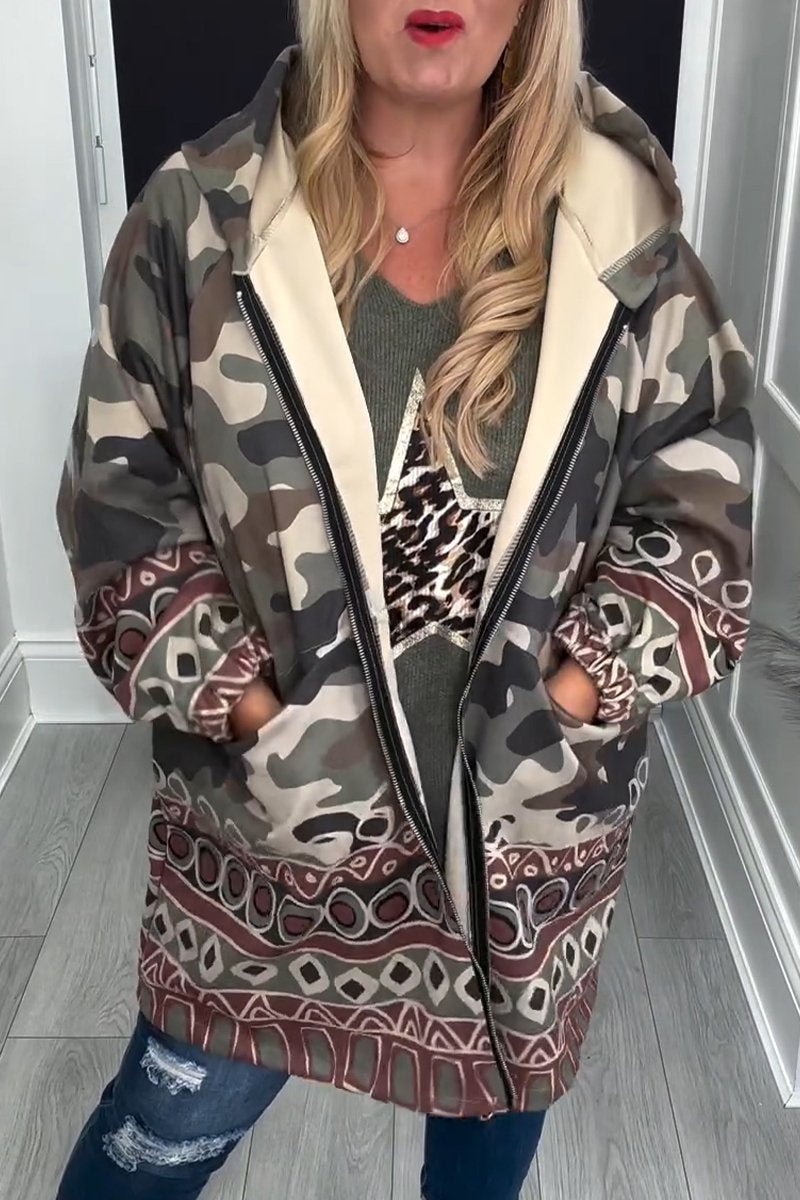Women's Hooded Long Sleeve Camouflage Printed Casual Jacket