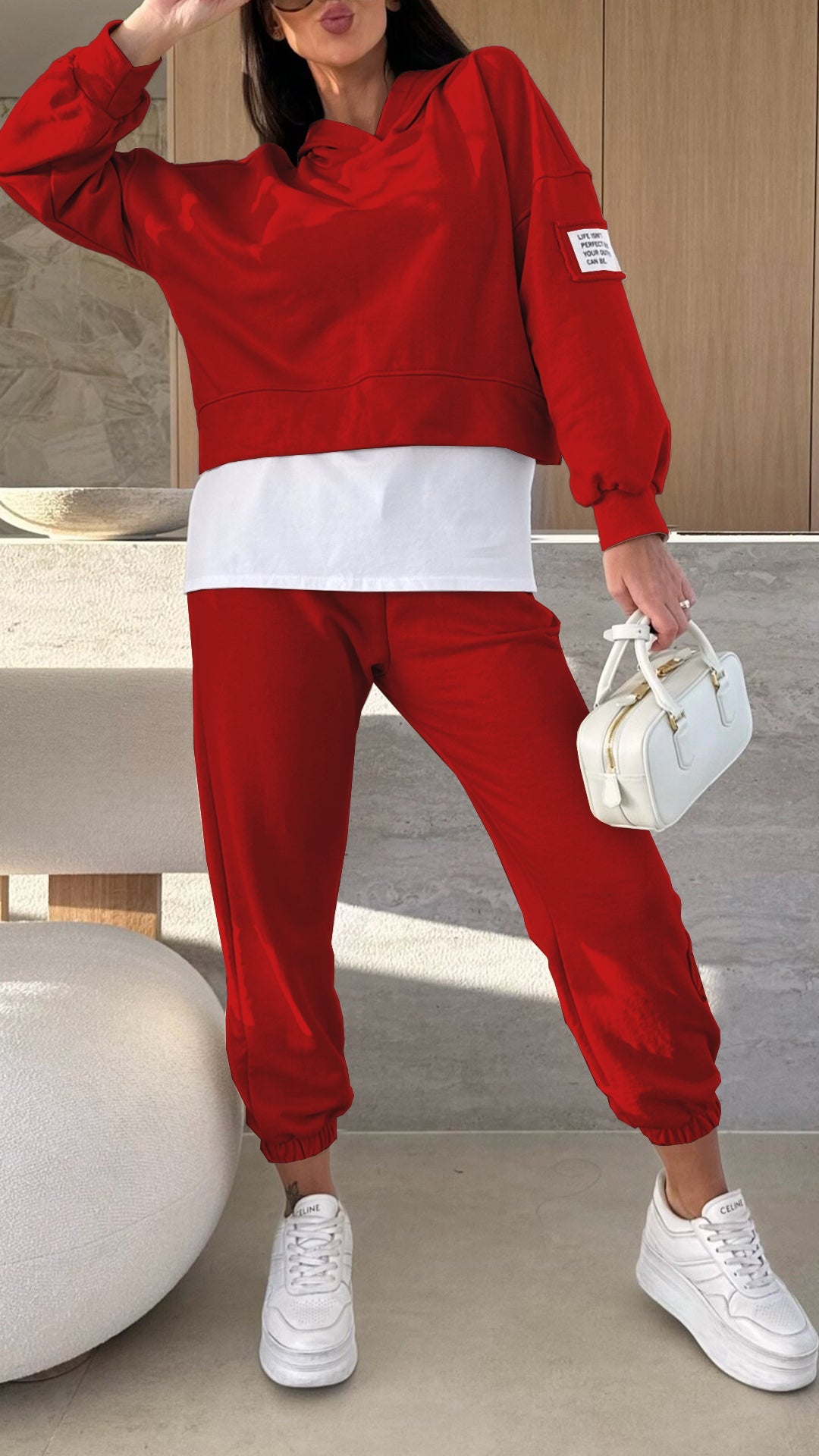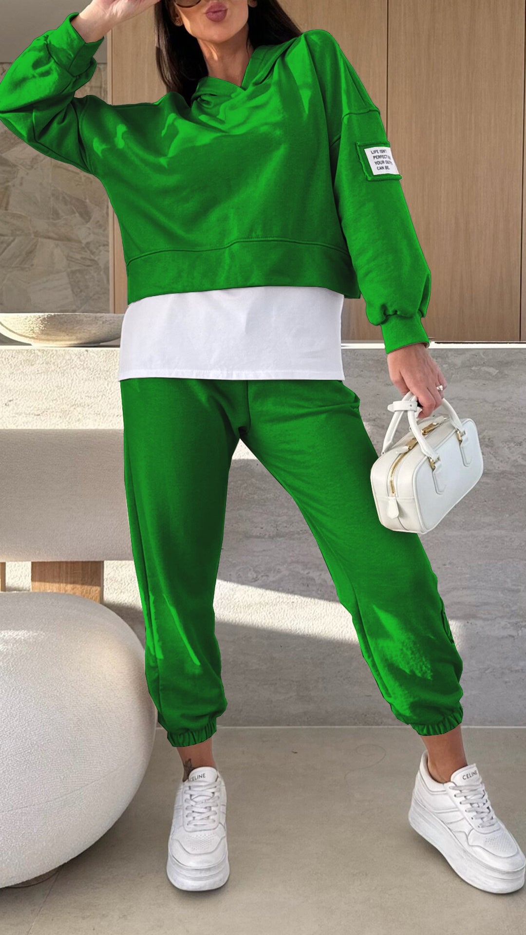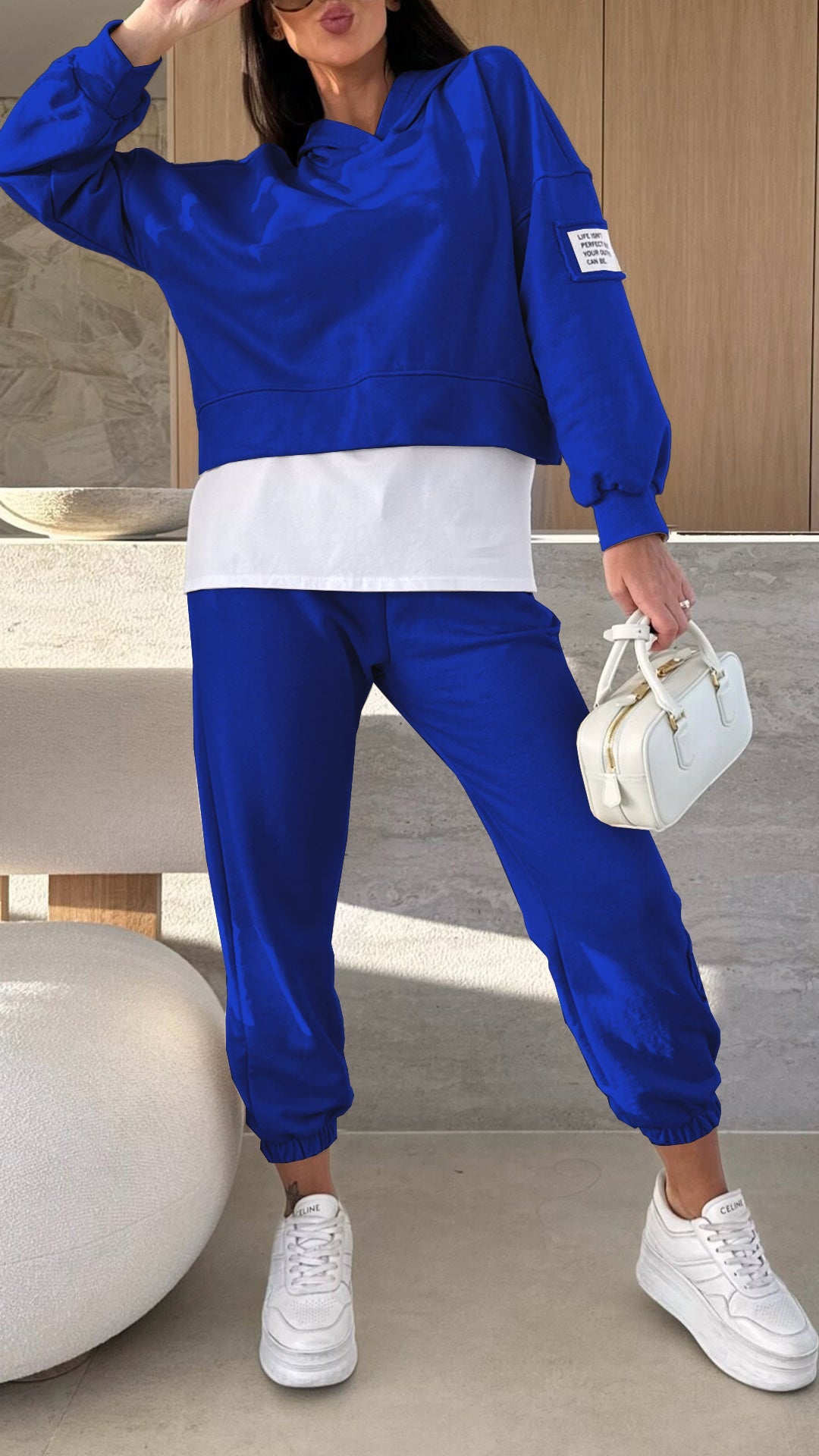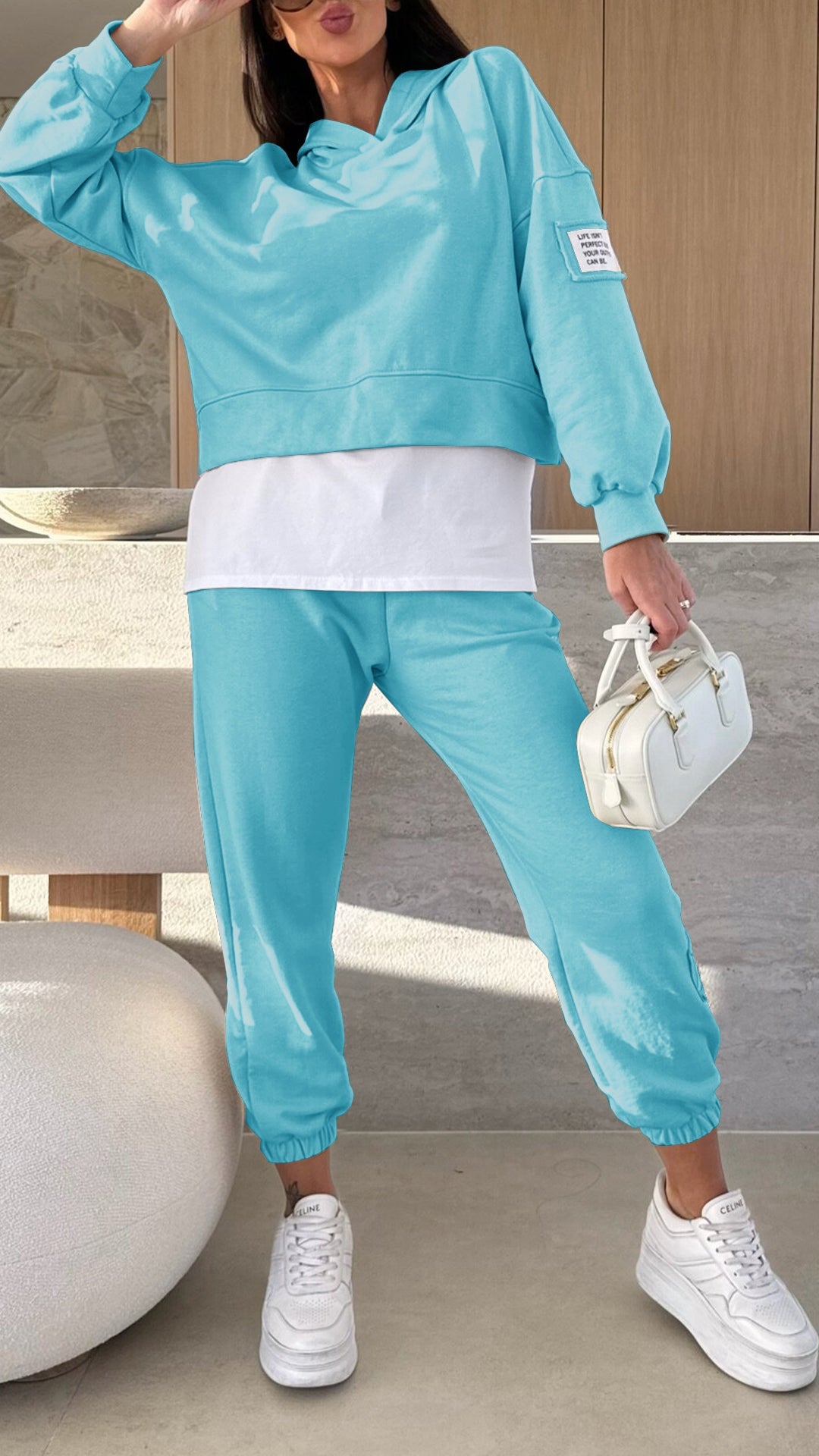 Women's Hooded Patchwork Casual Sweatshirt Suit