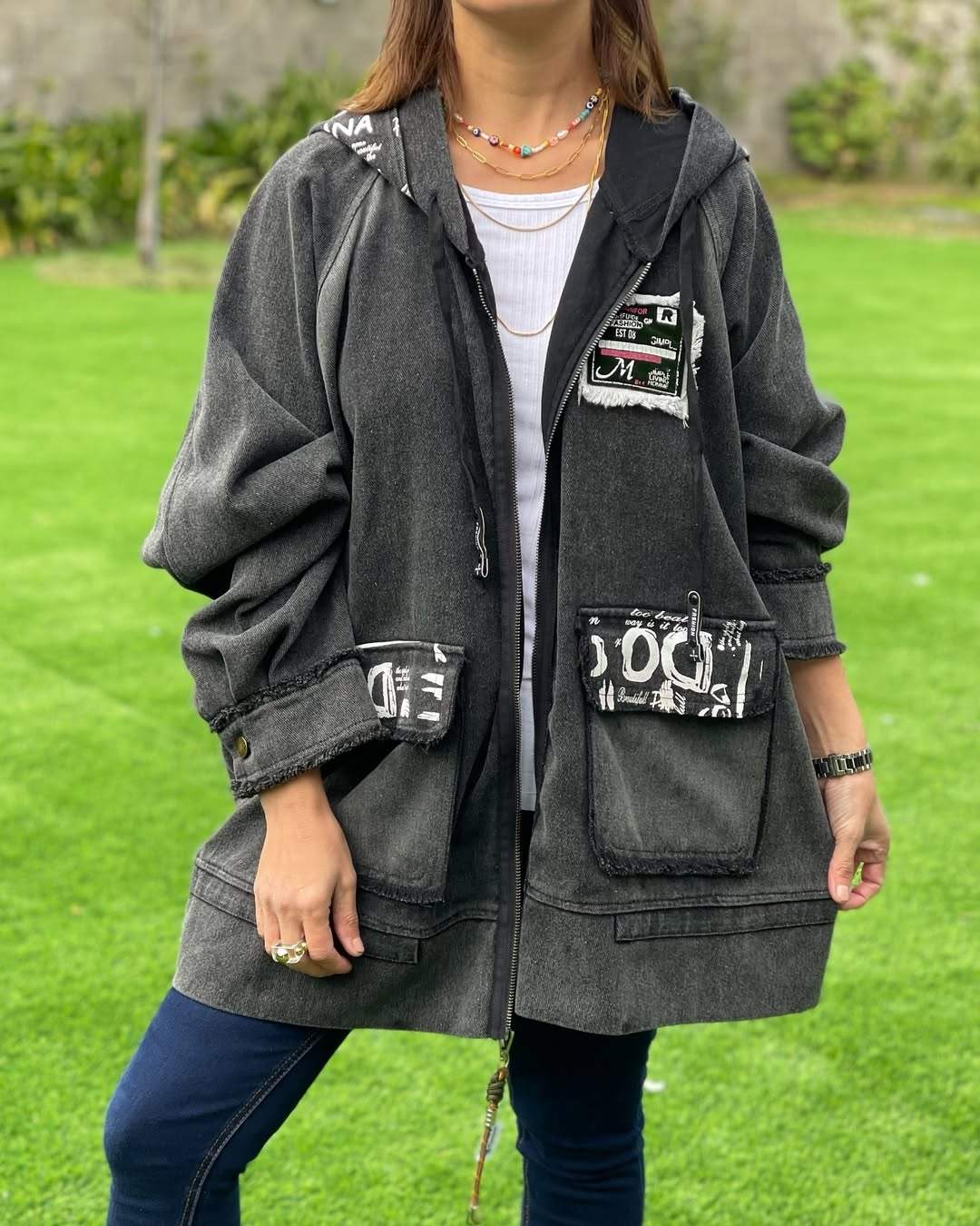 Women's Hooded Zip-up Denim Casual Coat
