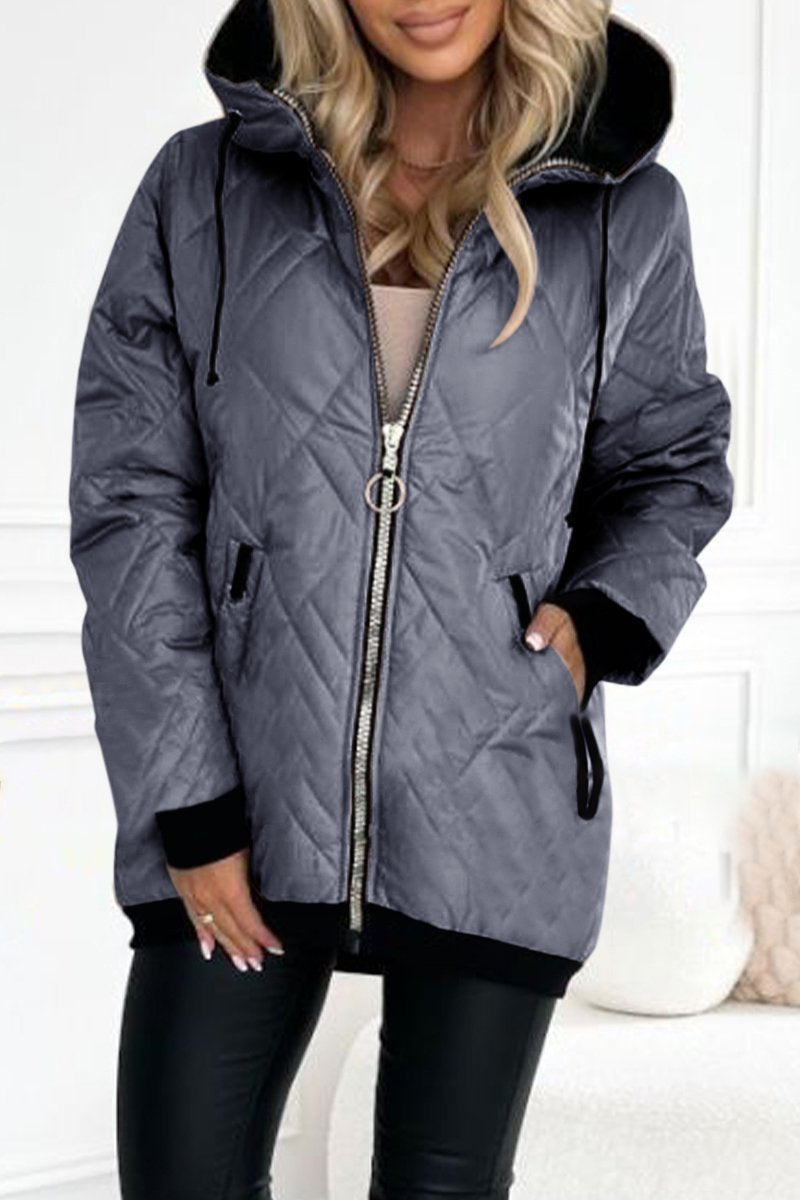 Women's Hooded Zipper Side Button Design Casual Coat