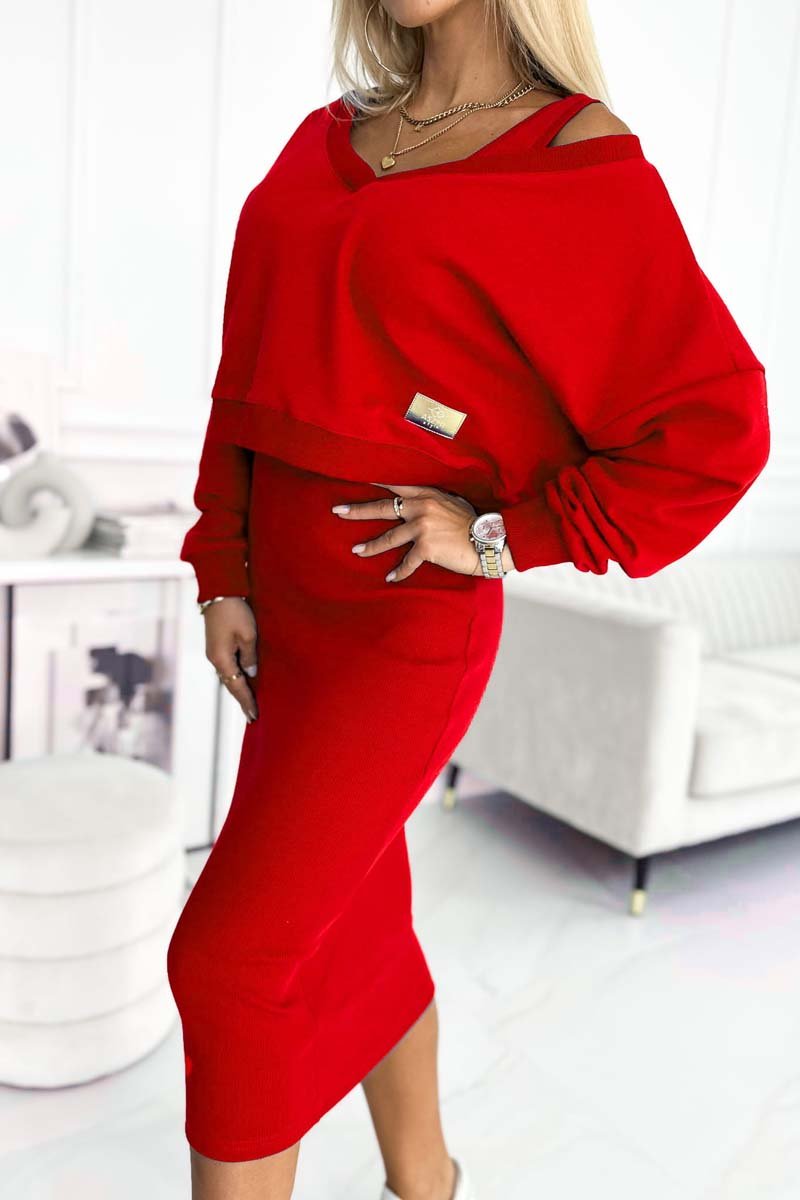 Women's Knitted Tank Dress V Neck Sweatshirt Set