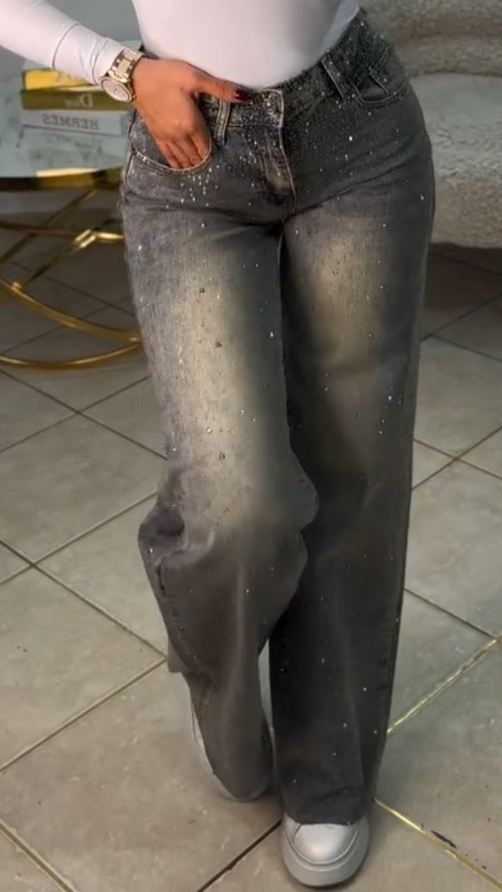 Women's Rhinestone Straight-leg Wide-leg Trousers