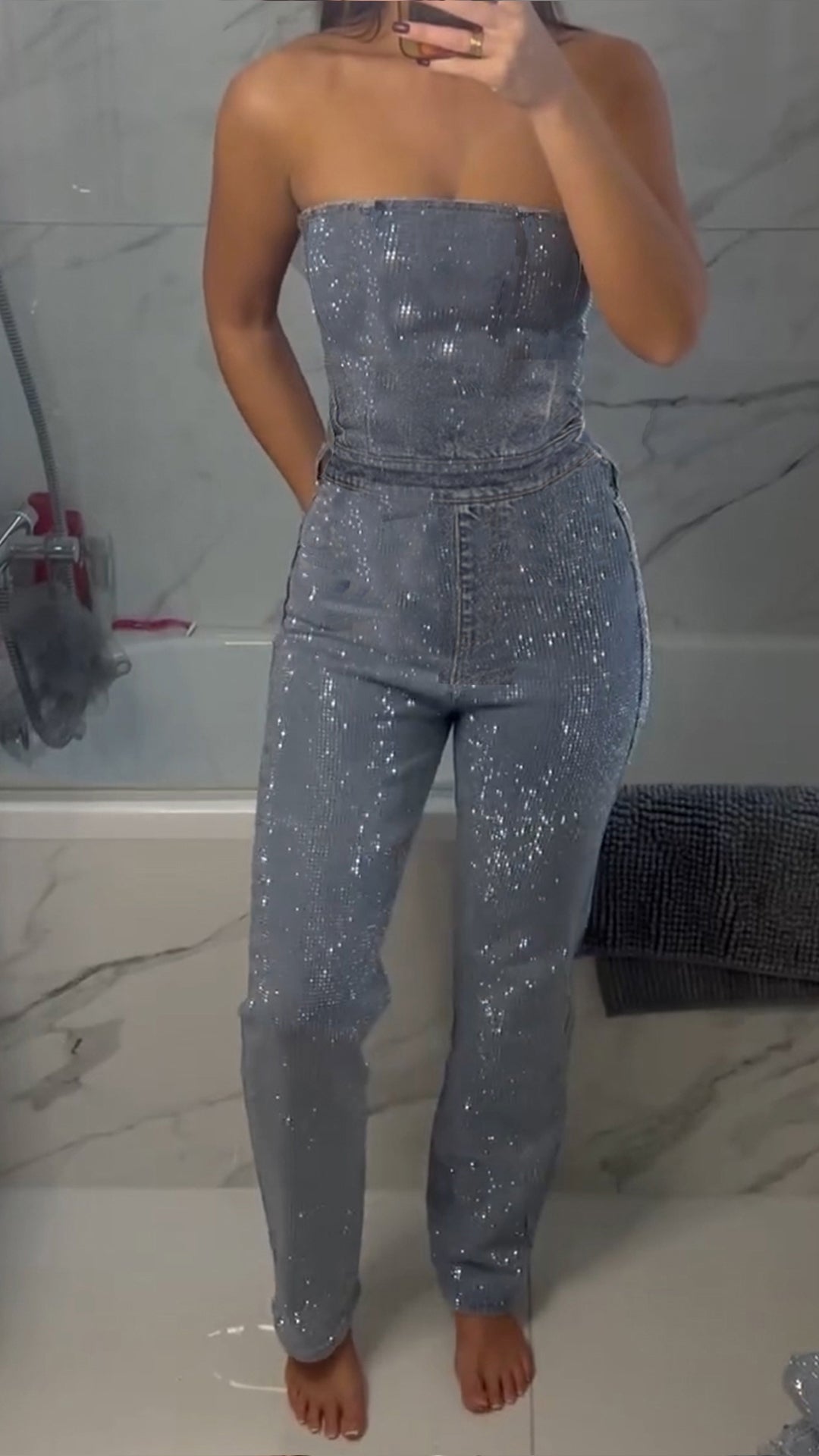 Women's Rhinestone Tube Top Slim Jumpsuit