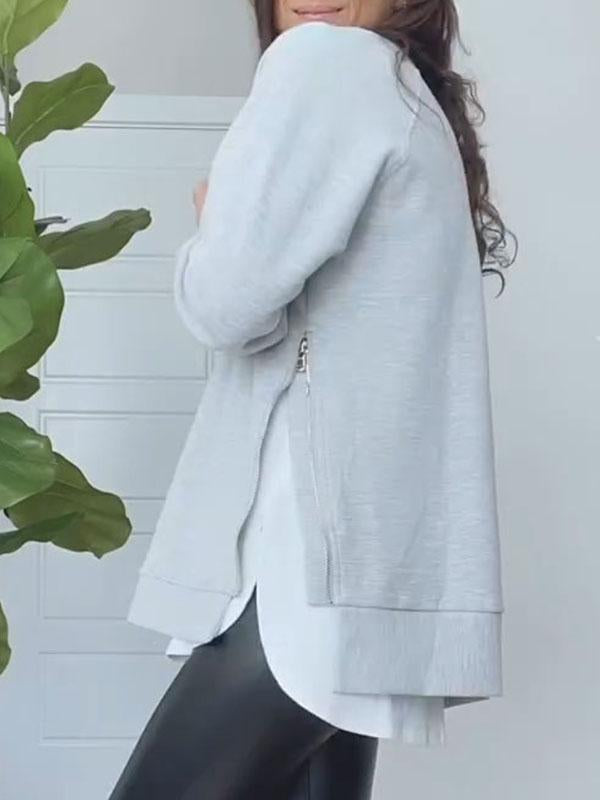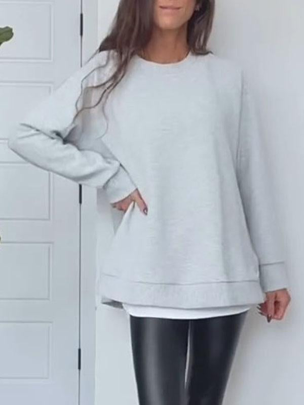 Women's Round Neck Long Sleeve Slit Sweatshirt