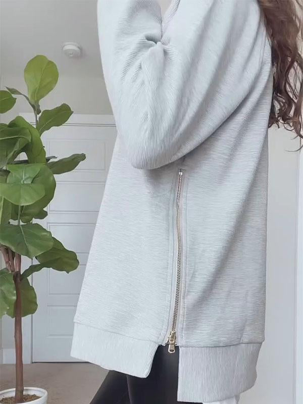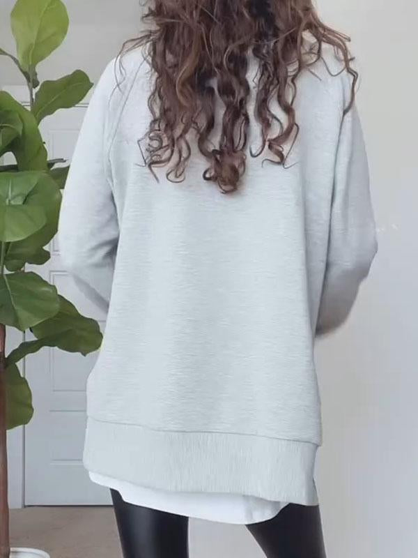 Women's Round Neck Long Sleeve Slit Sweatshirt