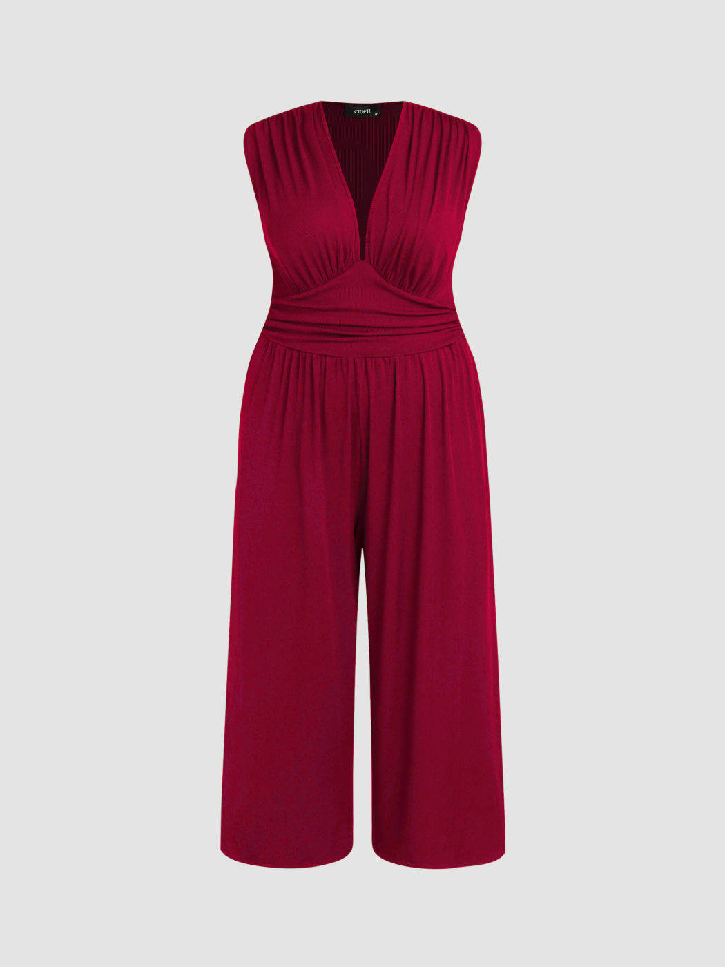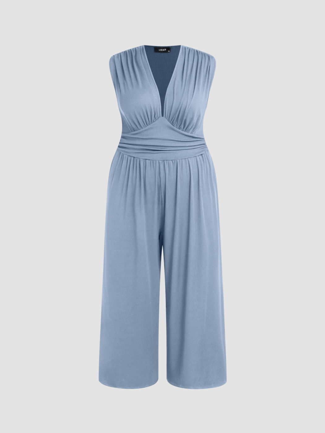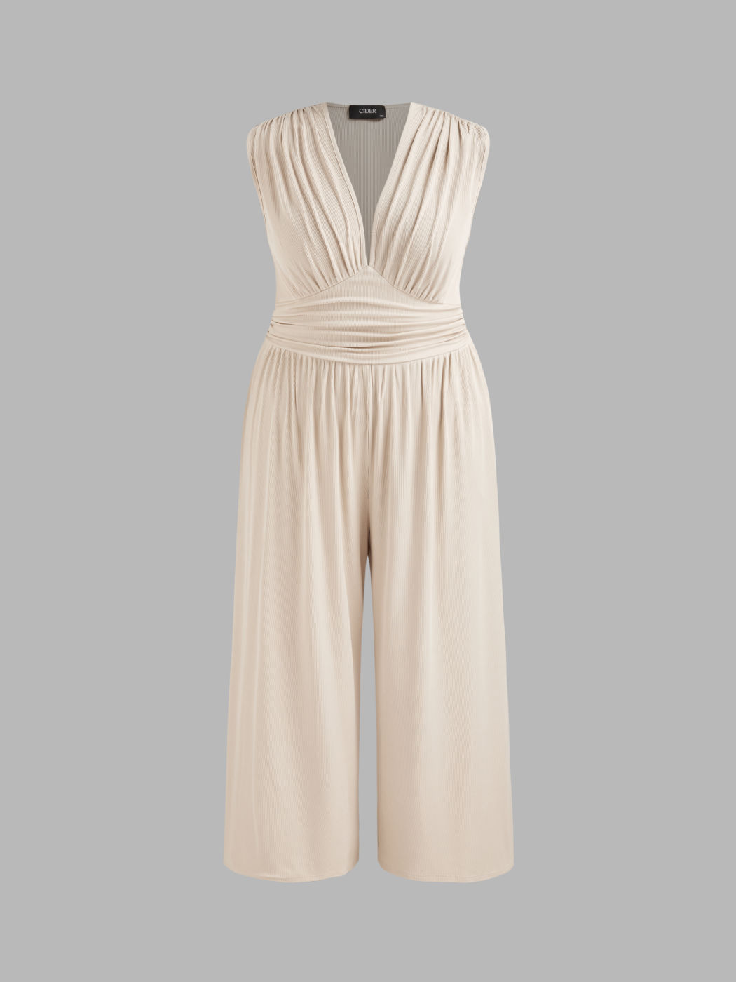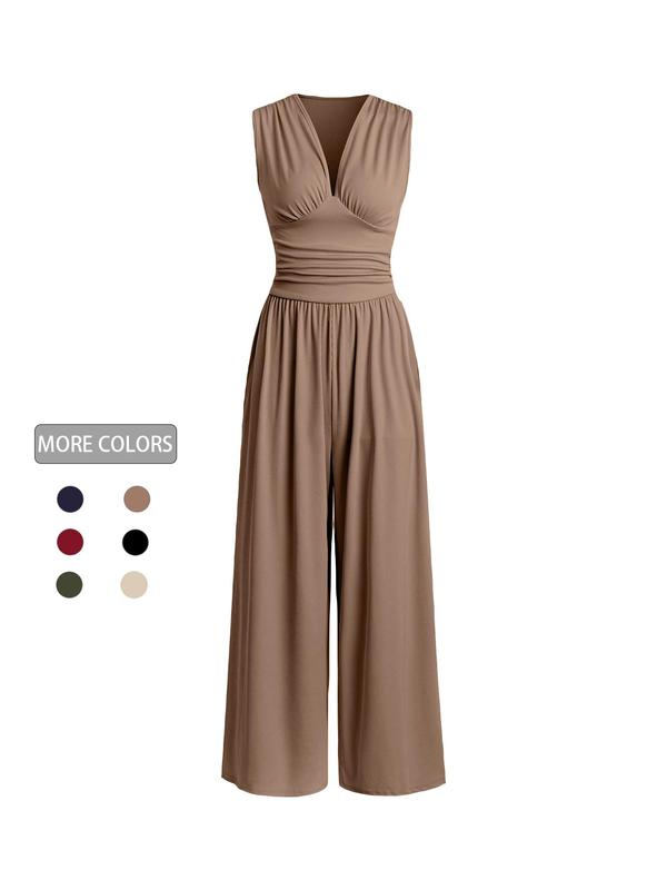 2026 Women's new jumpsuit with pockets Plain Ruched V Neck Ribbed Tank Jumpsuit, Summer Outfits 2026, Elegant Sleeveless Wide Leg Jumpsuit for Women for Vacation Holiday Party, Ladies Summer Clothes