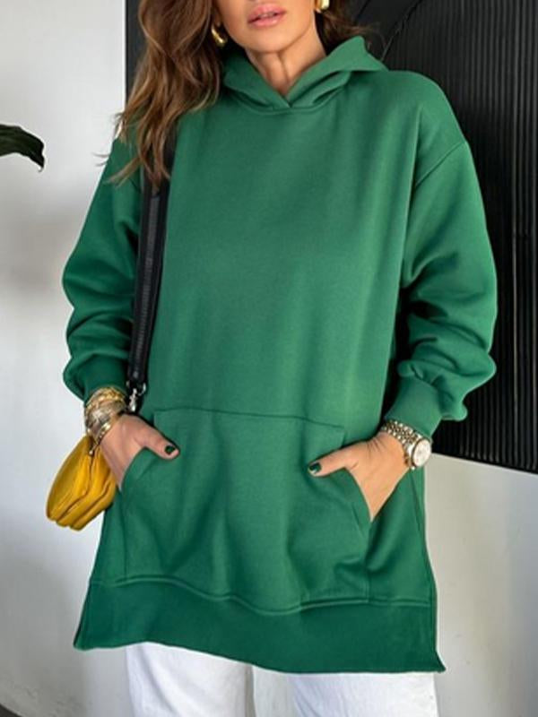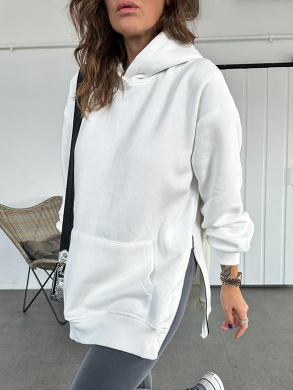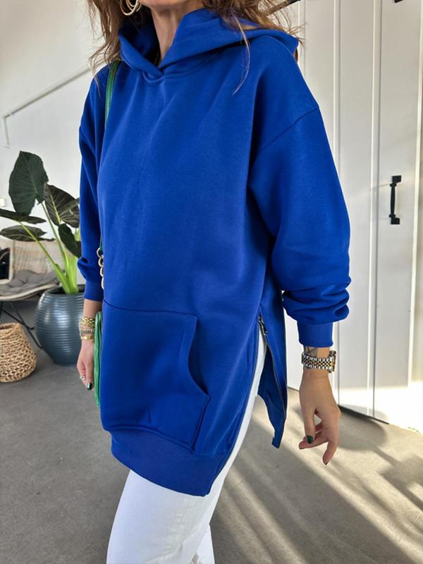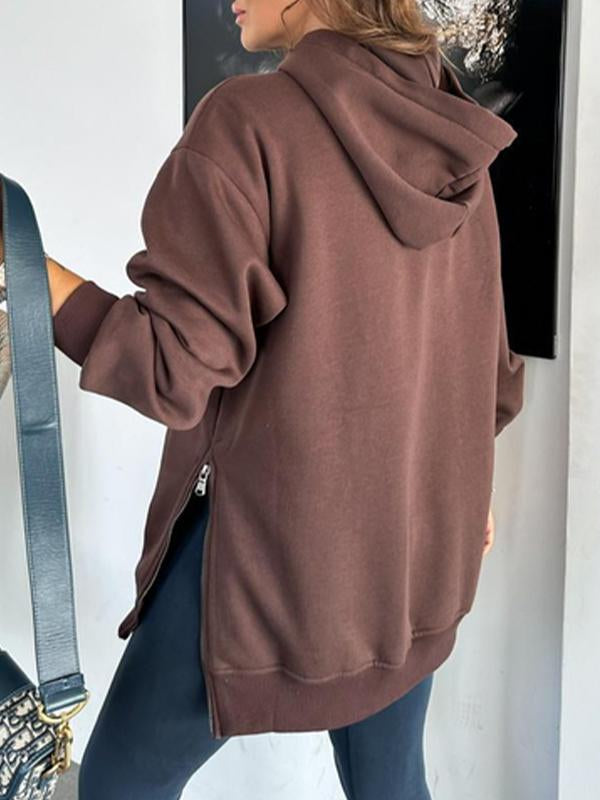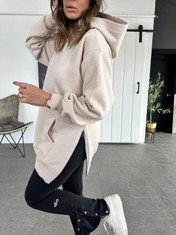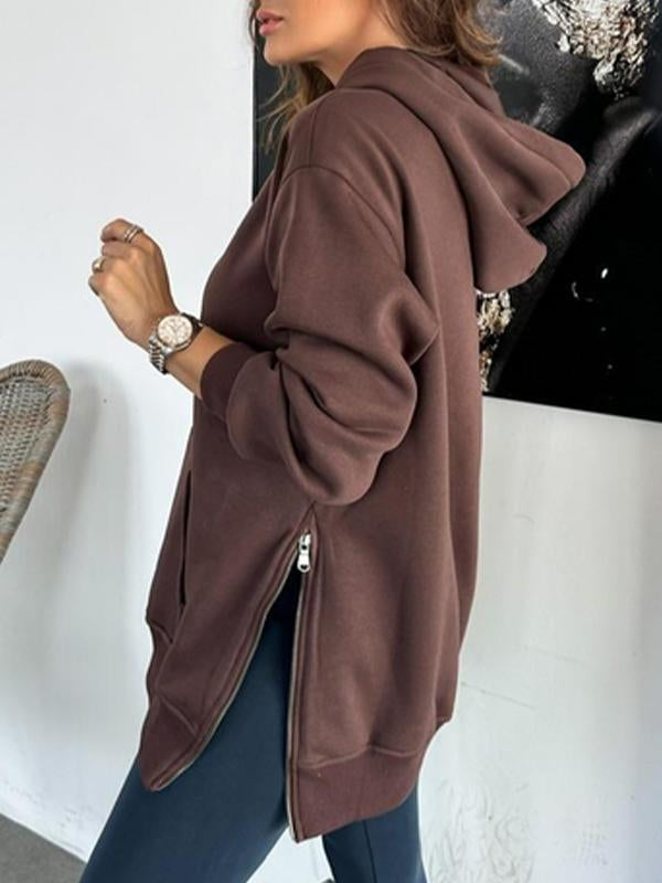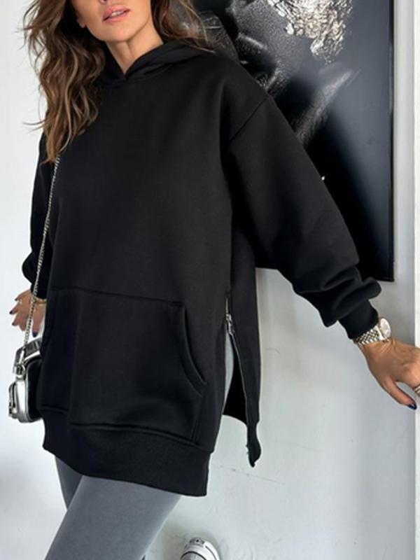 Women's Solid Color Hooded Casual Sweatshirt with Side Zipper