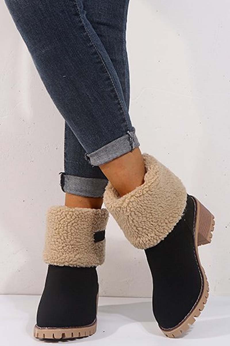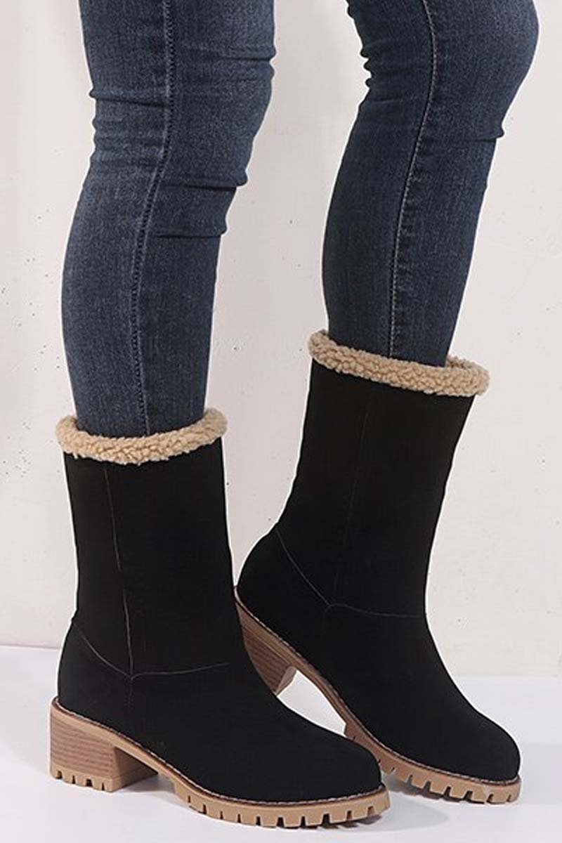 Women's thick heel high heel snow boots women's two-wear plus velvet warm mid-calf boots