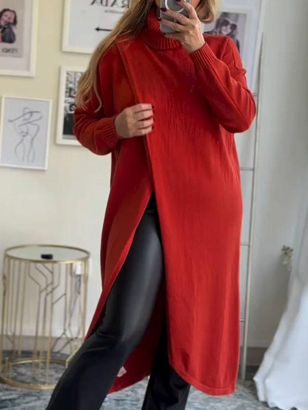Women's Turtleneck Long Sleeve Slit Sweater