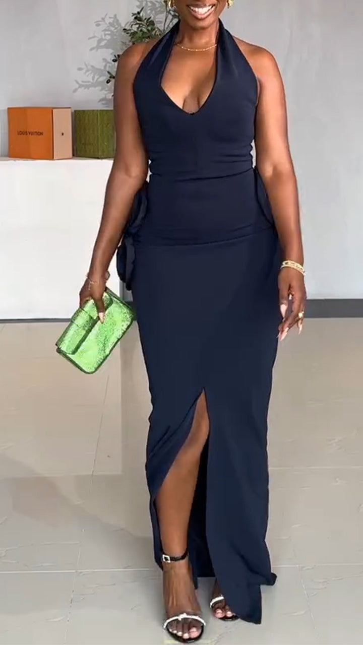 Women's V-neck Halter Neck Waist Slit Temperament Dress