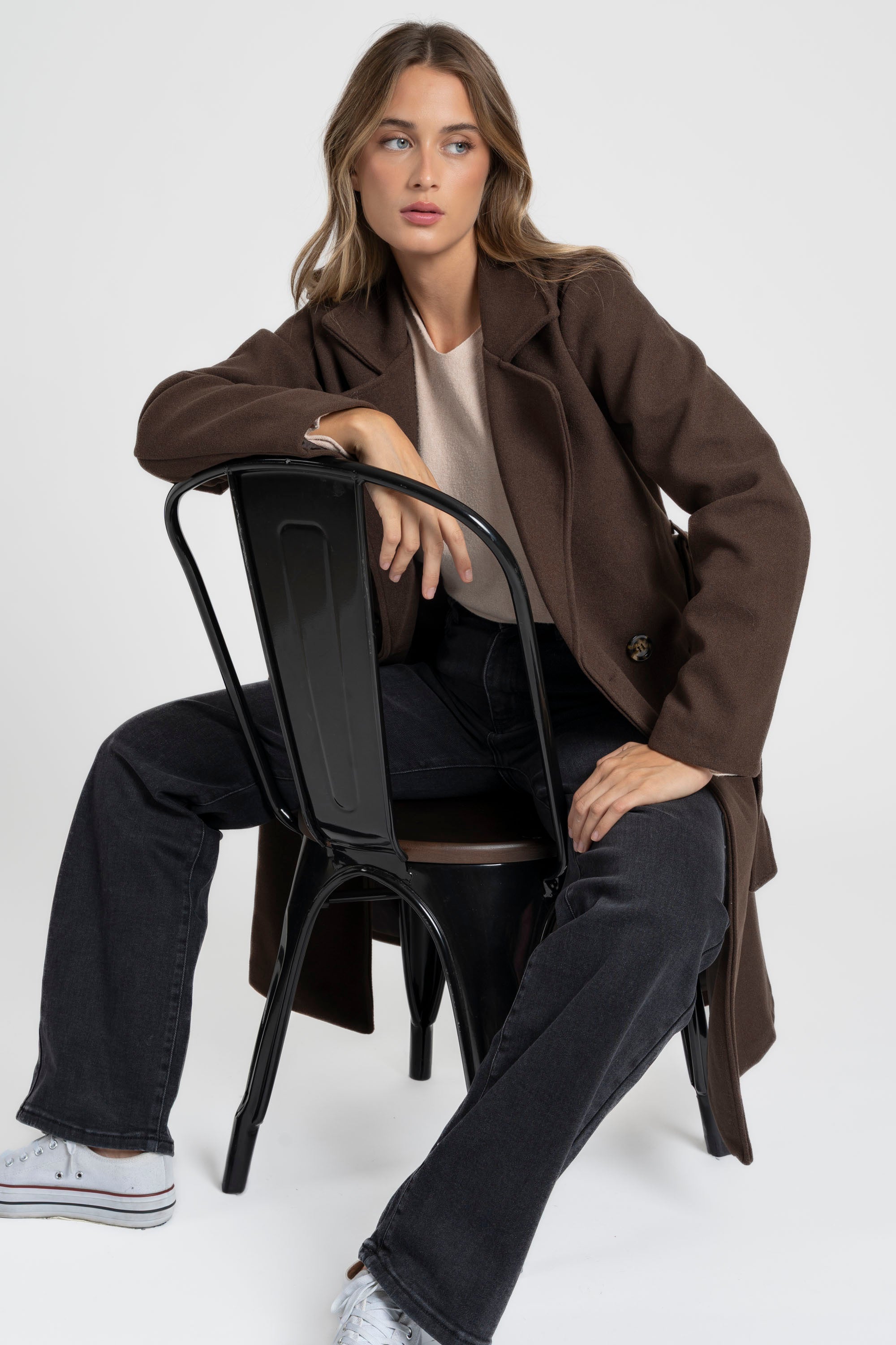 Tejido de paño. Diseño cruzado. Diseño recto. Cuello pico con solapa. Solapas con muesca. Manga larga. Dos bolsillos laterales. Cierre de botones en la parte delantera. Forro interior. Talla modelo: S. Altura modelo: 1,66 m.