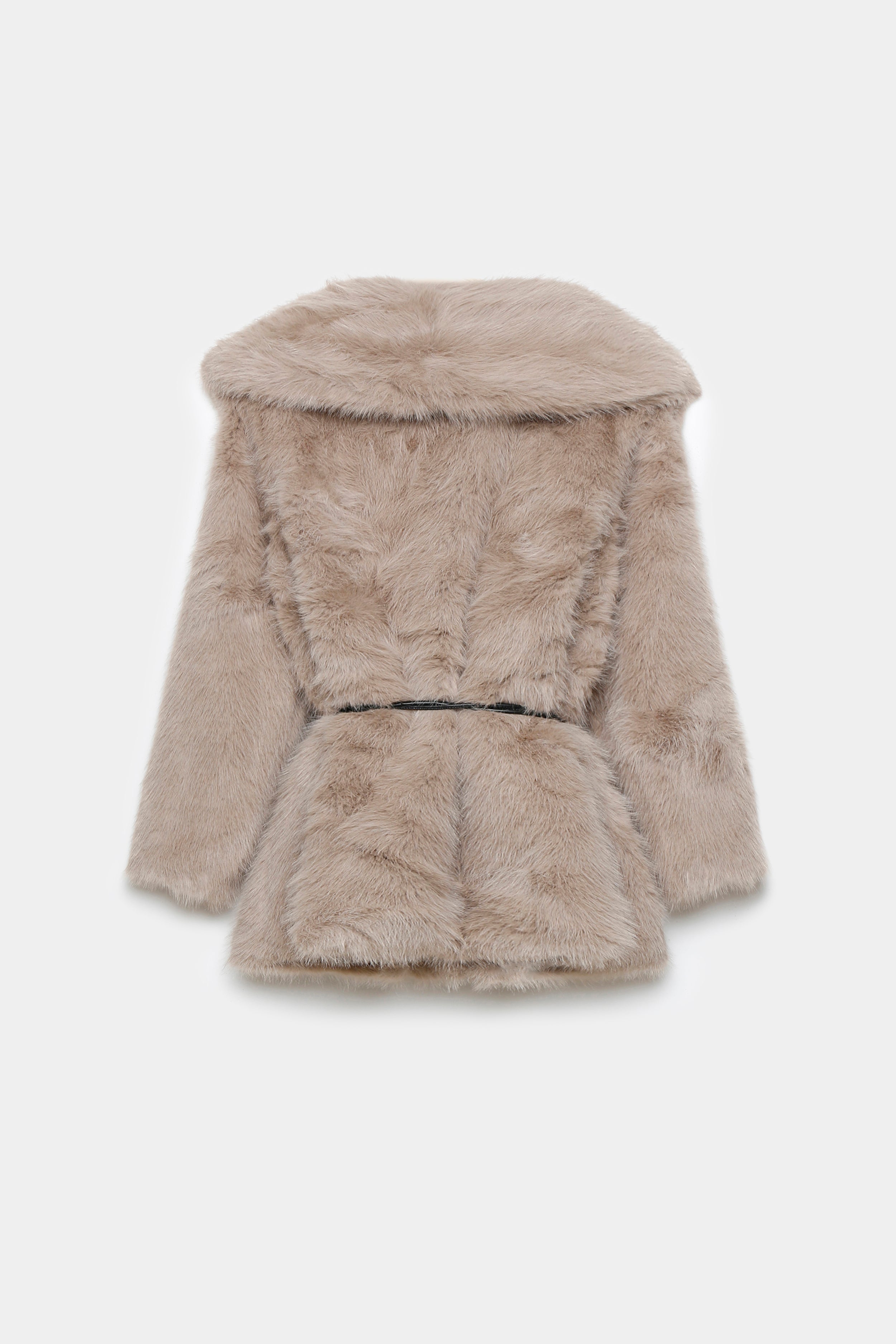 Cuello solapa y manga larga. Bolsillos laterales ocultos. Cinturón combinado.