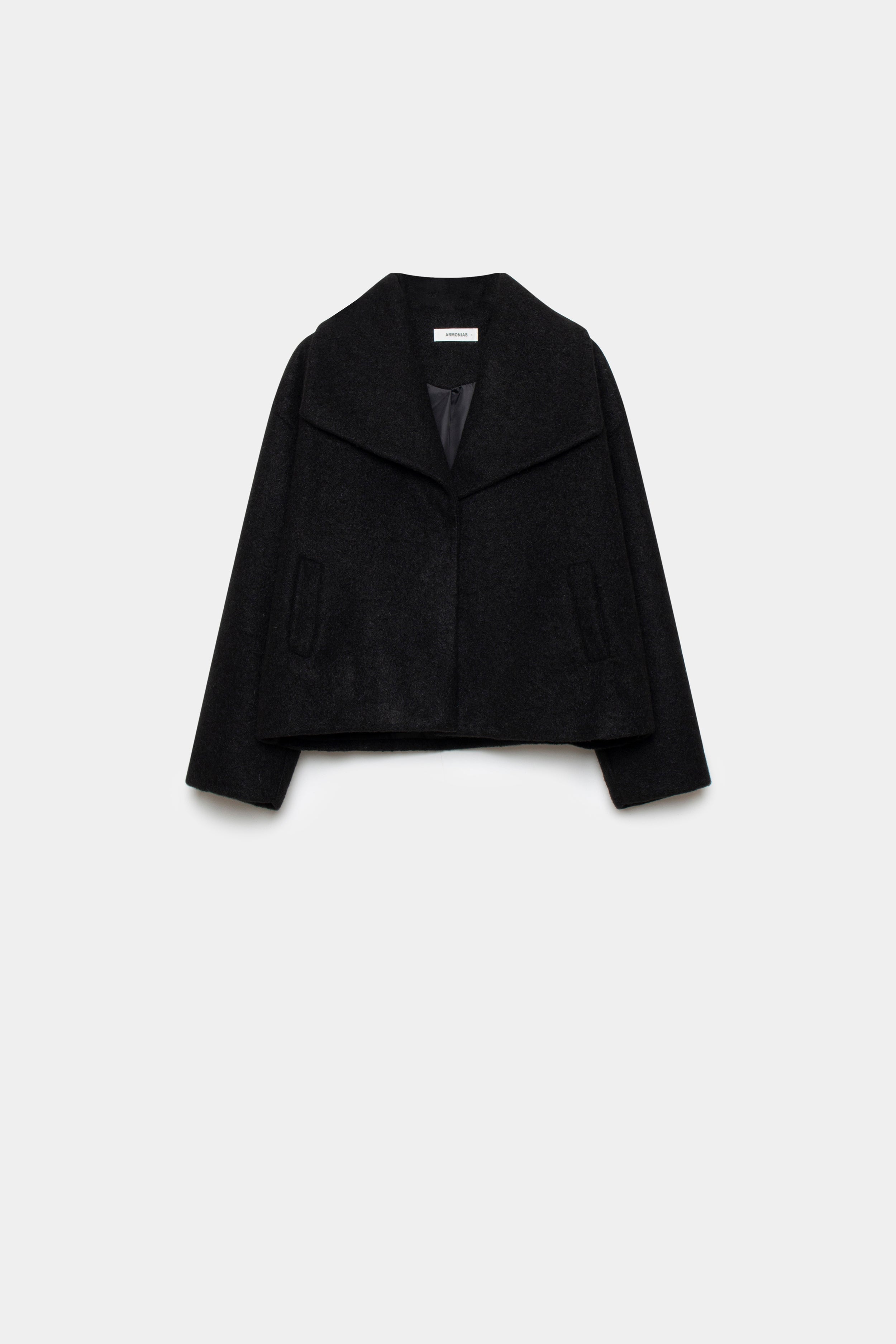 Tejido efecto pelo. Cuello solapa. Cierre de botón. Bolsillos laterales. Forrado. Diseño corto.