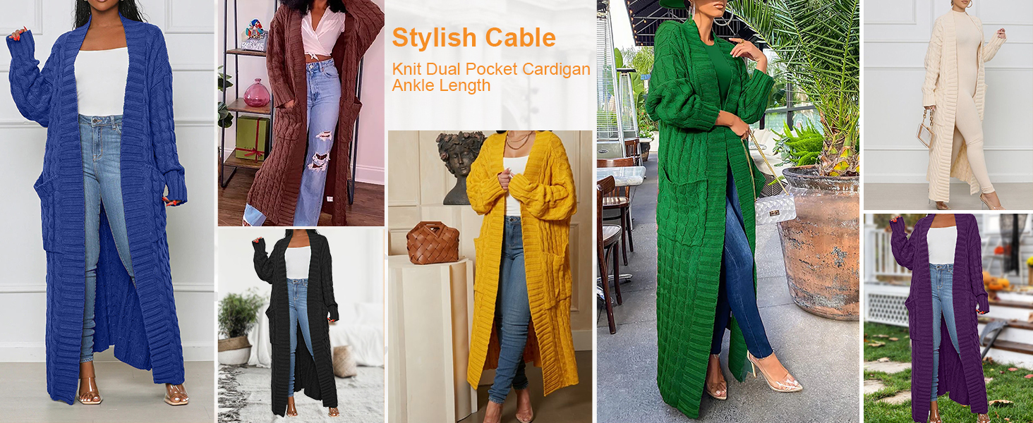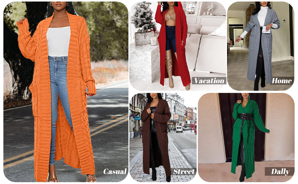 - ★Features: Open front cardigan for women, pockets on both sides, floor length, long sleeve, solid color, casual loose fit knit sweater coat, fall cardigan.