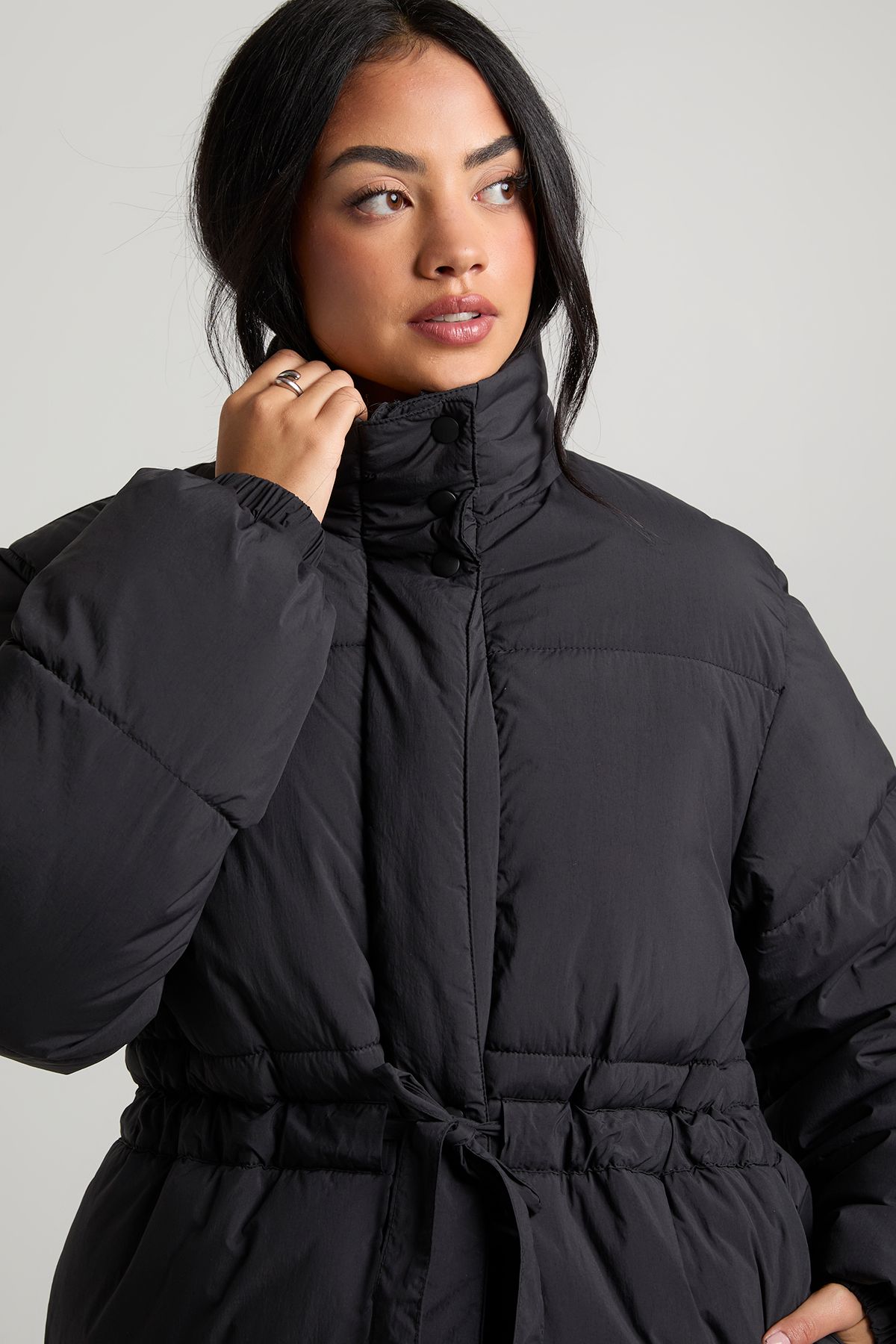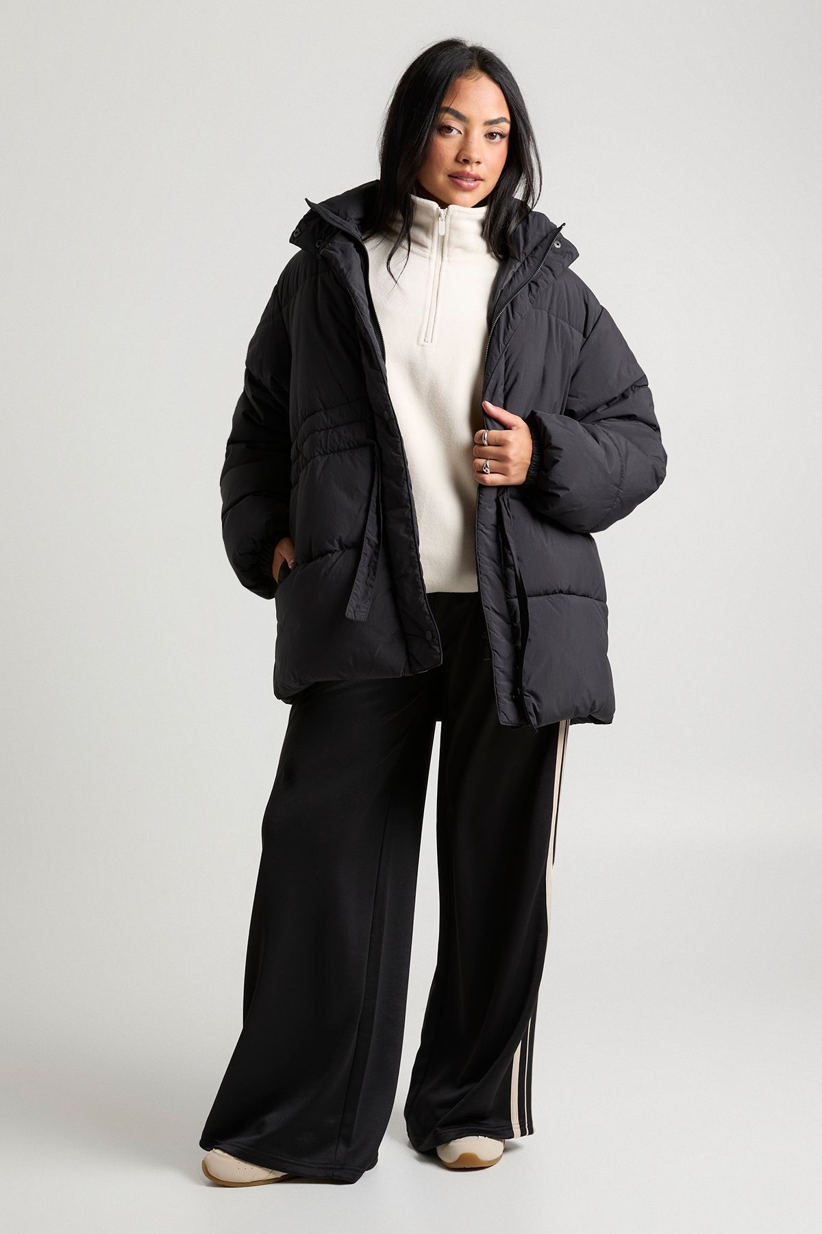 - Make a bold statement in this ultra-modern 2-in-1 scarf oversized puffer jacket from Boohoo. The ingenious design combines two winter essentials into one striking piece, perfect for those who value both fashion and functionality. Style with a half-zip jumper as shown for a layered look that's both practical and on-trend. The generous proportions create a fashionably relaxed silhouette that works brilliantly with slim-fit trousers or leggings for balanced proportions. Ideal for casual outings, weekend shopping trips, or chilly family gatherings, this jacket offers exceptional versatility. For a complete casual ensemble, pair with your favourite trainers and a cross-body bag. The oversized nature allows for easy layering over chunky knitwear when temperatures really drop, making this a truly adaptable addition to your autumn-winter wardrobe.
