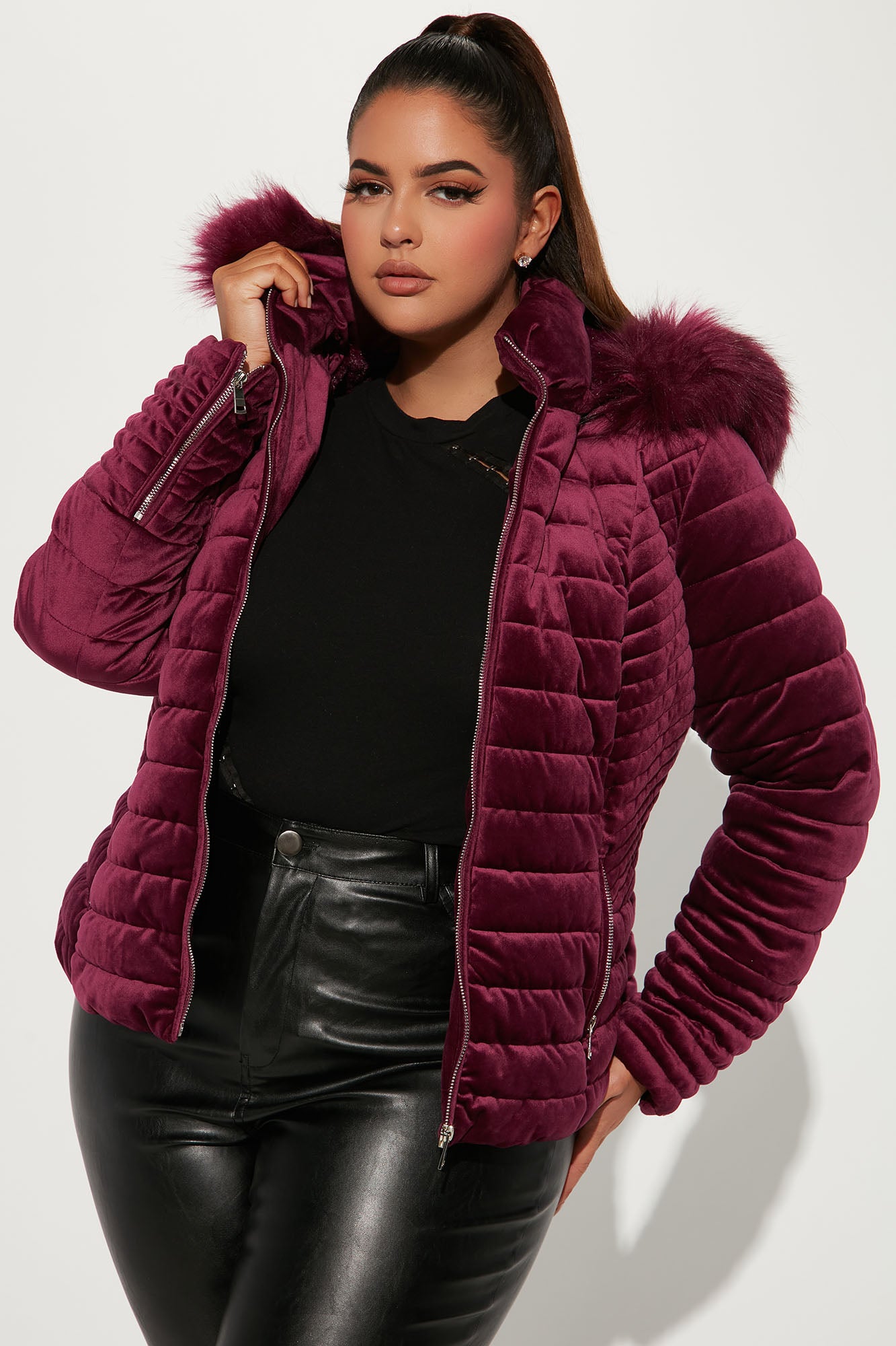 Always Ready Velvet Puffer Jacket - Magenta