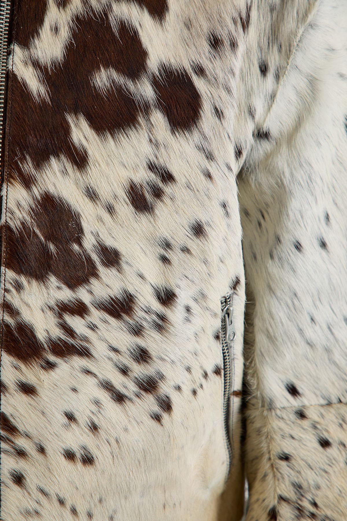 - Make a bold fashion statement with this striking cow hide leather jacket from Nasty Gal. The dramatic fringe detailing creates movement and texture, whilst the natural pattern of the hide ensures no two jackets are exactly alike. The cropped silhouette works beautifully with high-waisted trousers, as shown with the white wide-leg style in the images. For evening outings, pair with slim black trousers and heeled boots for an edgy club look, or dress it down with your favourite denim and trainers for casual drinks. The zip-through design allows for versatile styling-wear fully closed on cooler evenings or open over a simple top when you want the jacket to take centre stage. This distinctive piece will become the focal point of countless outfits, perfect for those who want to showcase their unique style at any nightlife venue.