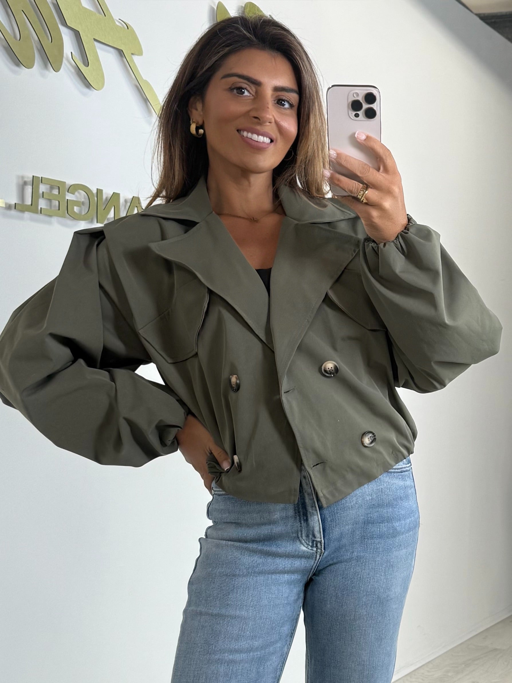 Balloon Style Double Breasted Collared Parker Jacket